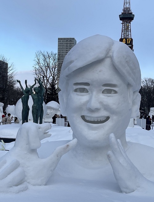 大型雪雕和各种动漫人物雕塑,以其别出心裁的创意,赢得了国外游客格外的欢喜和赞叹。尤其是大谷翔平君的雪像,让我有幸与之合照,留下了难忘的纪念。