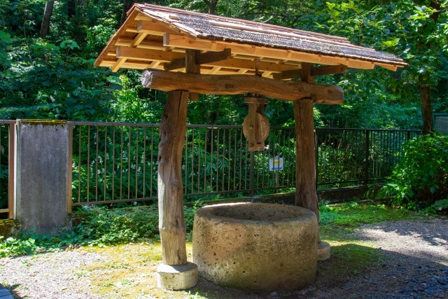 泉水因受阻井沿而微微形成一个凸面,像是要鼓起来,然而终于溢出井沿,流向四方。