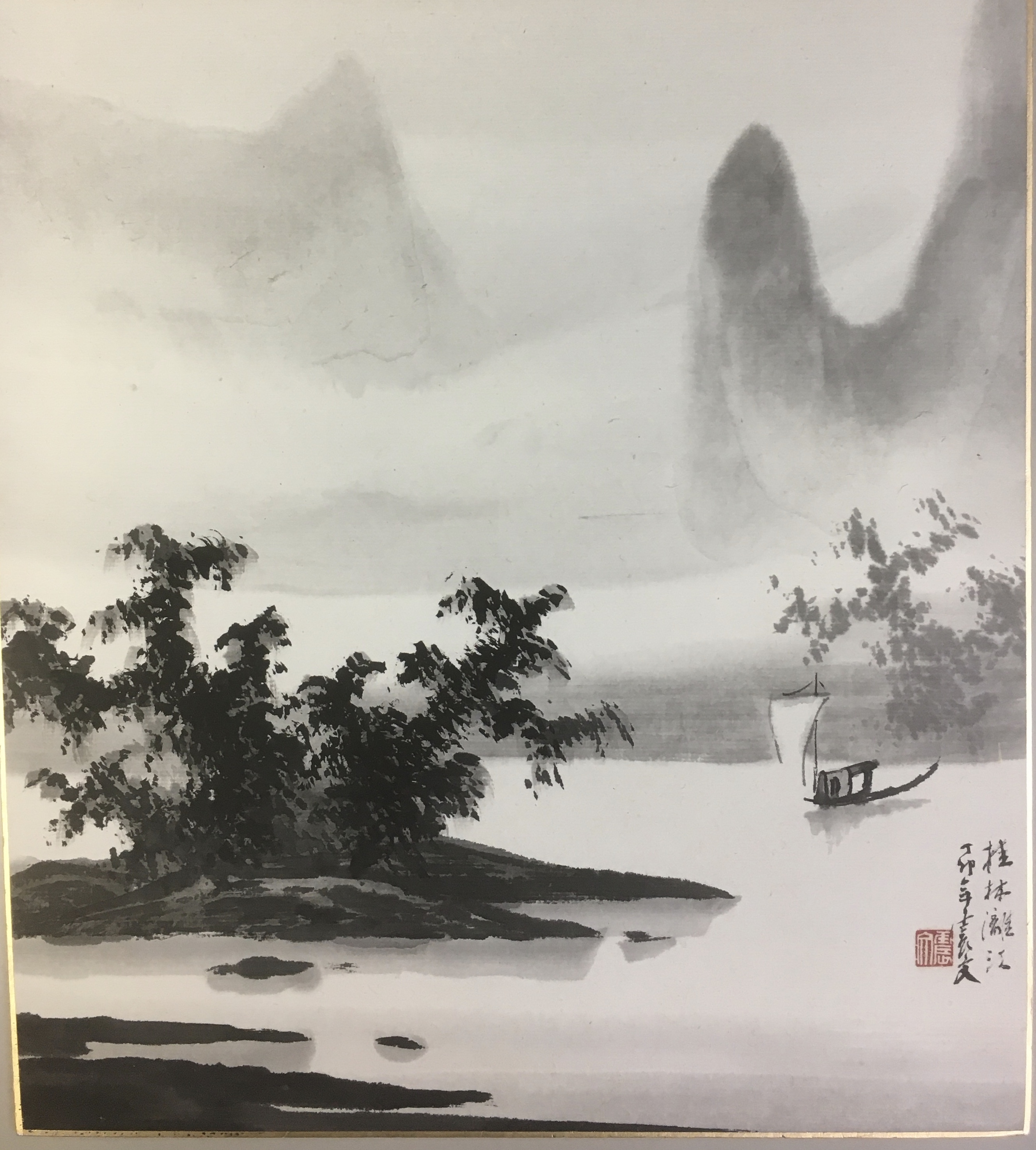 由于矿石的颗粒遇光会反射。在不同的环境下会闪烁不同的光芒。这是照片和印刷品无法复制的,属于岩彩画的独特魅力。