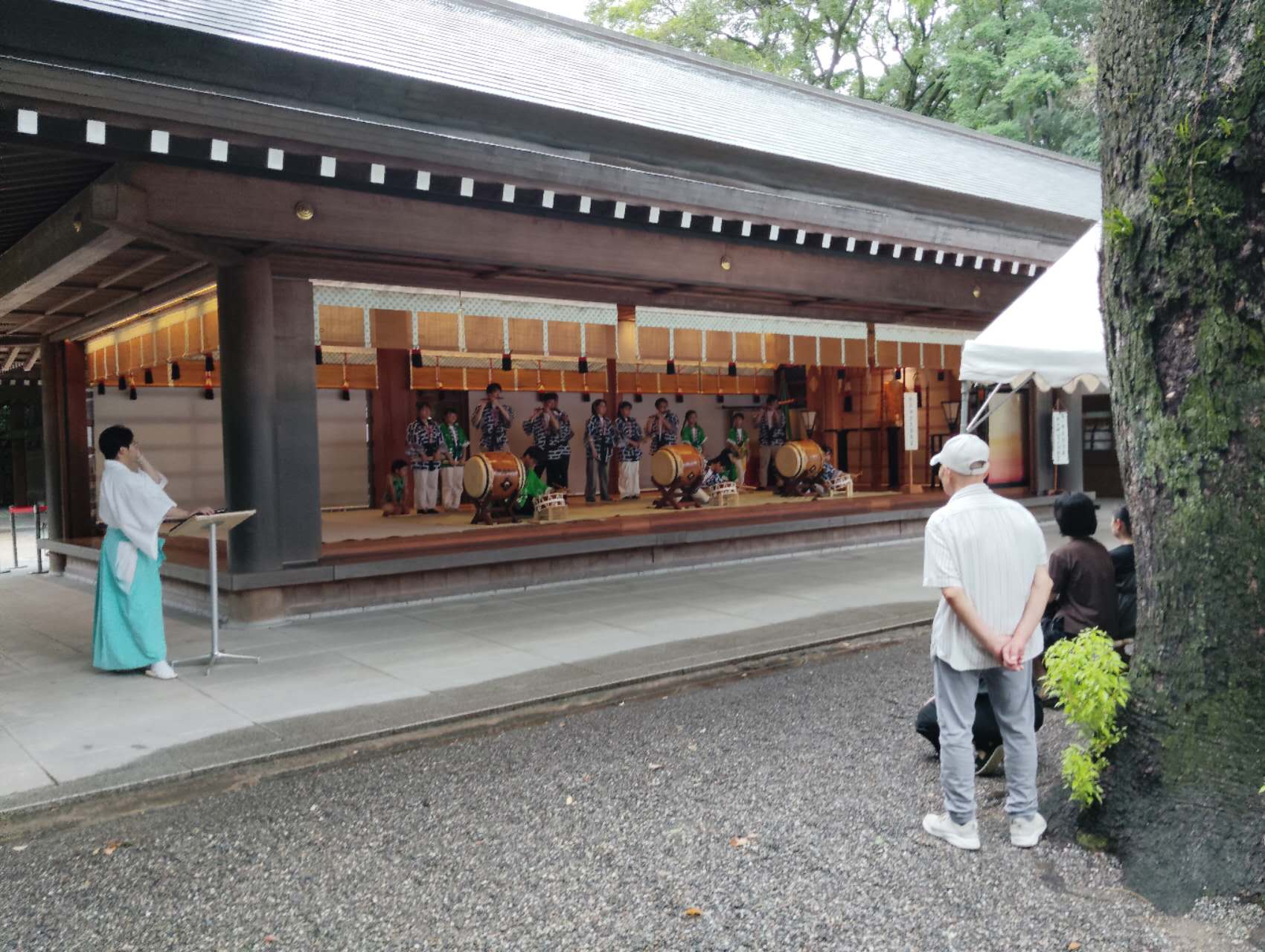 热田神宮内绿树葱笼,古木参天,空气里着弥漫着一种温润的气息。据说这儿供奉着守护女性安产、美丽与智慧的神炅。树林间传来幽玄的雅乐,仿佛是历代女子的祈祷声在神宮林木的青枝绿叶中流趟。