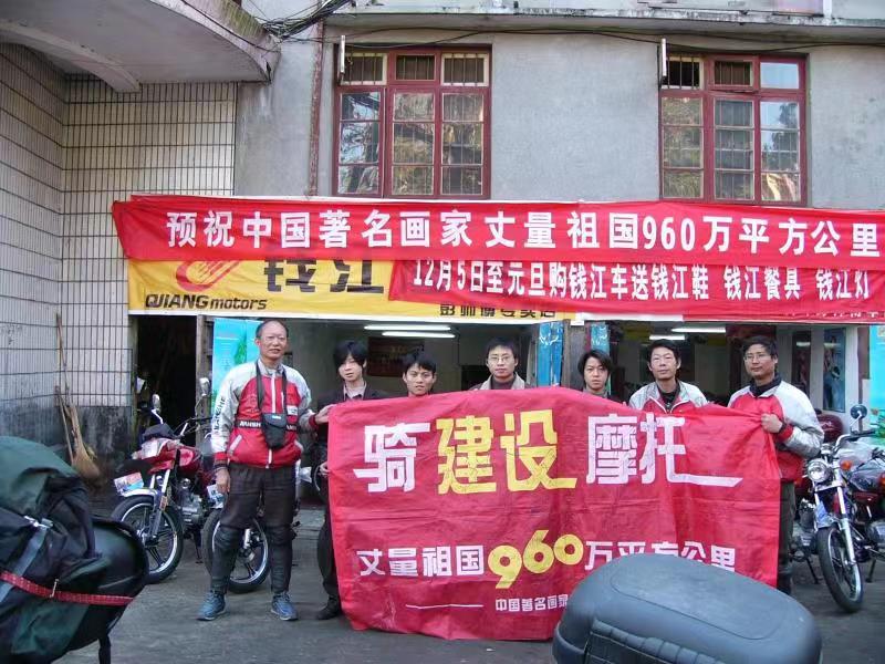 黄三枝:明代书画大师董其昌曾经说过:画家以古人为师,己为上乘,进此当以天地为师。此番议论与石涛上人:搜尽奇峰打草稿,是一脉相承,他们影响并推动了历代很多画家的创造精神,尤其近代的张大千、傅抱石、李可染等。从零四年在家乡扬州,当时我与另外两位画家(王兴国  叶敏文)商量:是否能以写生的方式,周游全国去寻找自己最能表现的山川风物,通过写生画出自己的笔墨语言,三人一拍即合,热情高涨的给摩托车厂家写信。第一个回信的是建设摩托,通过合作我们才得知,建设、长安都是晚清重臣张之洞最早创办的民族企业,比北大、清华还早。一切手续办妥后,我们开始了壮游.出发前,当地政府及画界朋友为我们设壮行酒会,我们每人捐了三幅画,得款18000元送给孤残老人。一路上我们饱揽了大好河山,写生创作,走走停停,凡是走到能入画的地方,总是住上几天,除了写生。有时将游记文章投给几家摩托车杂志,同时配合厂家宣传,各行其事。记得我们乘渡轮到海南,登岸后从五指山绕海南17个县市,走了二十多天,出来的时候是从万泉河。海南的风光十分迷人,在整个周游中,我们在云南,尤其在广西时间较长,我们到了广西的靖西县,这个地方离越南最近,当年中越边境打的最为激烈的地方。这个地方的山石结构非常丰富。我们写生的时间较长,在这里可以找到古人的笔法,比如传统山水中的解索皴、披麻皴、斧劈皴,雨点皴,以及折带皴等。