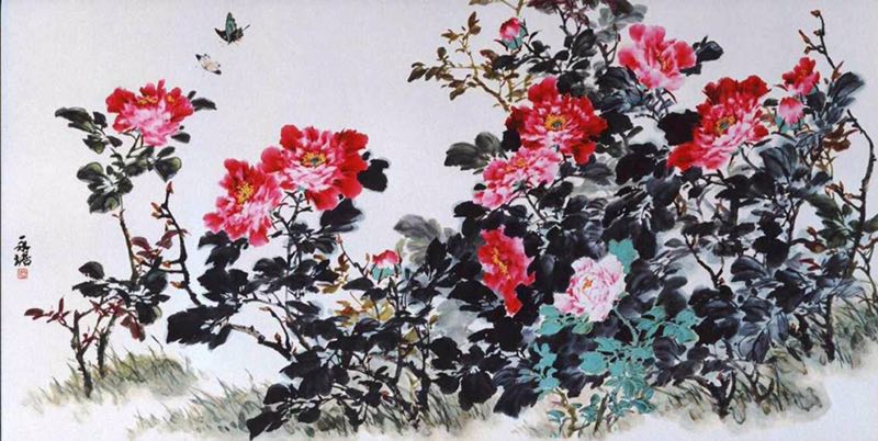 杨永琚的长野善光寺“桂林之雨”创作成功以后,日本的各大新闻媒体都争先恐后的做了报道和介绍,当时的内阁总理宇野宗祐也送来了鲜花表示祝贺,从长野的善光寺出发,杨永琚和日本的寺庙结下了不解之缘。1991年,他又应邀为世界遗产日本佛教圣地高野山金刚峰寺创作了“牡丹图”,“桂林胜景”等巨幅作品,1992年他为广岛常陆山宿王寺创作障壁画“漓江秀色”,他以流畅的笔墨,丰富的技法,以及在挥洒中表露出来的真情,深深地感动了数以万计的日本观众。他在师承传统的基础上,不断追求新意,形成的洒脱飘逸清秀隽永的风格,也让日本的同行画家们也赞叹不已。无论是创作巨幅的障壁画,还是单幅的花卉小品,杨永琚都是极其认真的,听说在完成“桂林之雨”的那一刻,他因为长时间地趴在地上作画,腰已经疼得站不起来了,上下楼梯都需要有人搀扶。其实画家的职业十分辛苦,艺术创作需要消耗大量的精力体力,个中艰辛,唯自己知道。一个画家坚强的意志力,往往是常人所难以想象的。杨老师,请您谈谈体会吧。