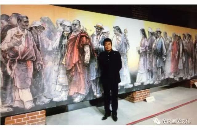 王子江:2004年,我在中国美术馆举办了大型的个展:“世界是一个大家庭”,旅日画家在中国美术馆举办个展我是第一次,是中国文化部给我做企划,收到了这个很好的反响。我的老师,我的这个前辈在西藏,他们当听到我在中国美术馆举办了个展以后,非常高兴,邀请我到西藏去。他们用在西藏三十多年的经验帮助我,让我去体验生活。