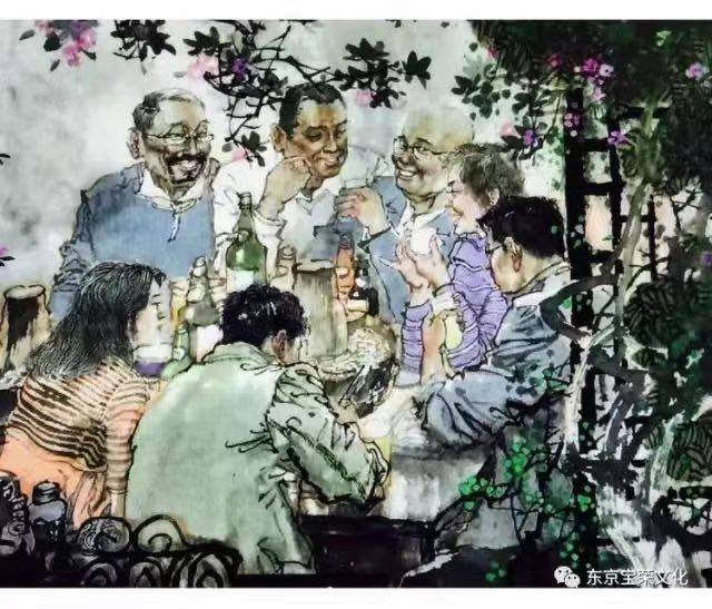 谁说里面表达的只是现实社会,画面表达了画家对现实和人生的一种深情的关注和对人文情怀的一种深入挖掘吧,所以我对生活的体验对这个作品里边人物的精神风貌的观察表达,包括他们的外在特点,内心的世界。包括对他们整体的的印象,都是由比较注意的。我像拍电视剧一样,我像一个导演一样去安排这些人物,怎么去交流,怎么去表达。他们这里面的人物的安排还是很丰富,在这个画面上的也是追求一种优美而略带一种伤感的,一种抒情的基调,包括对现代生活的一种迷茫,或者思索。