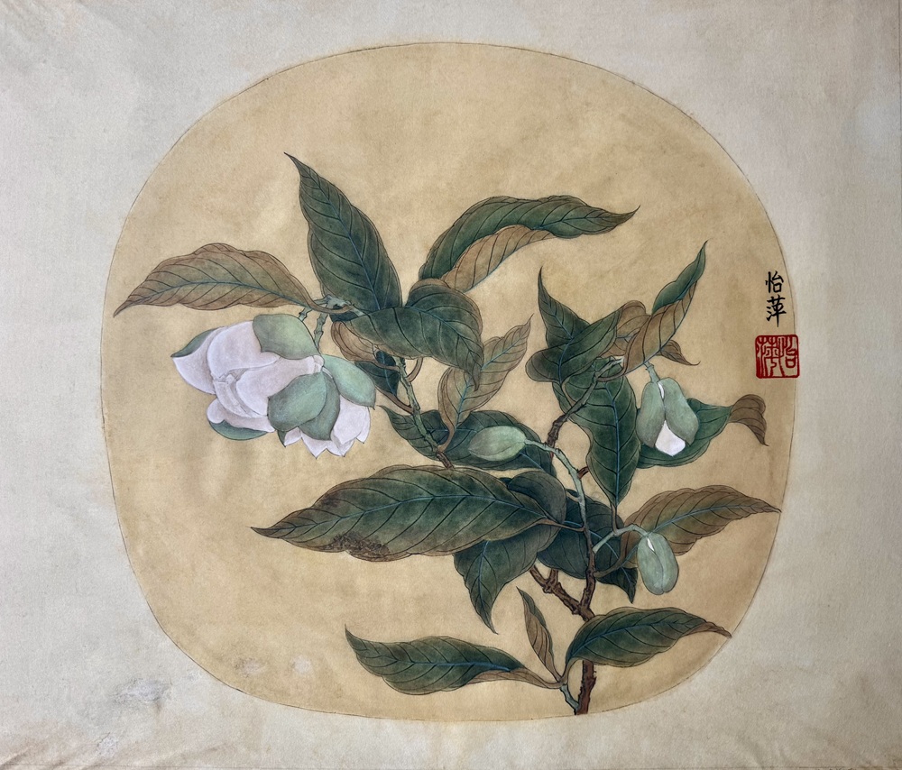 这二幅作品,说是“听雨”,说是“花放无声”,但却是此时无声胜有声,珠联璧合