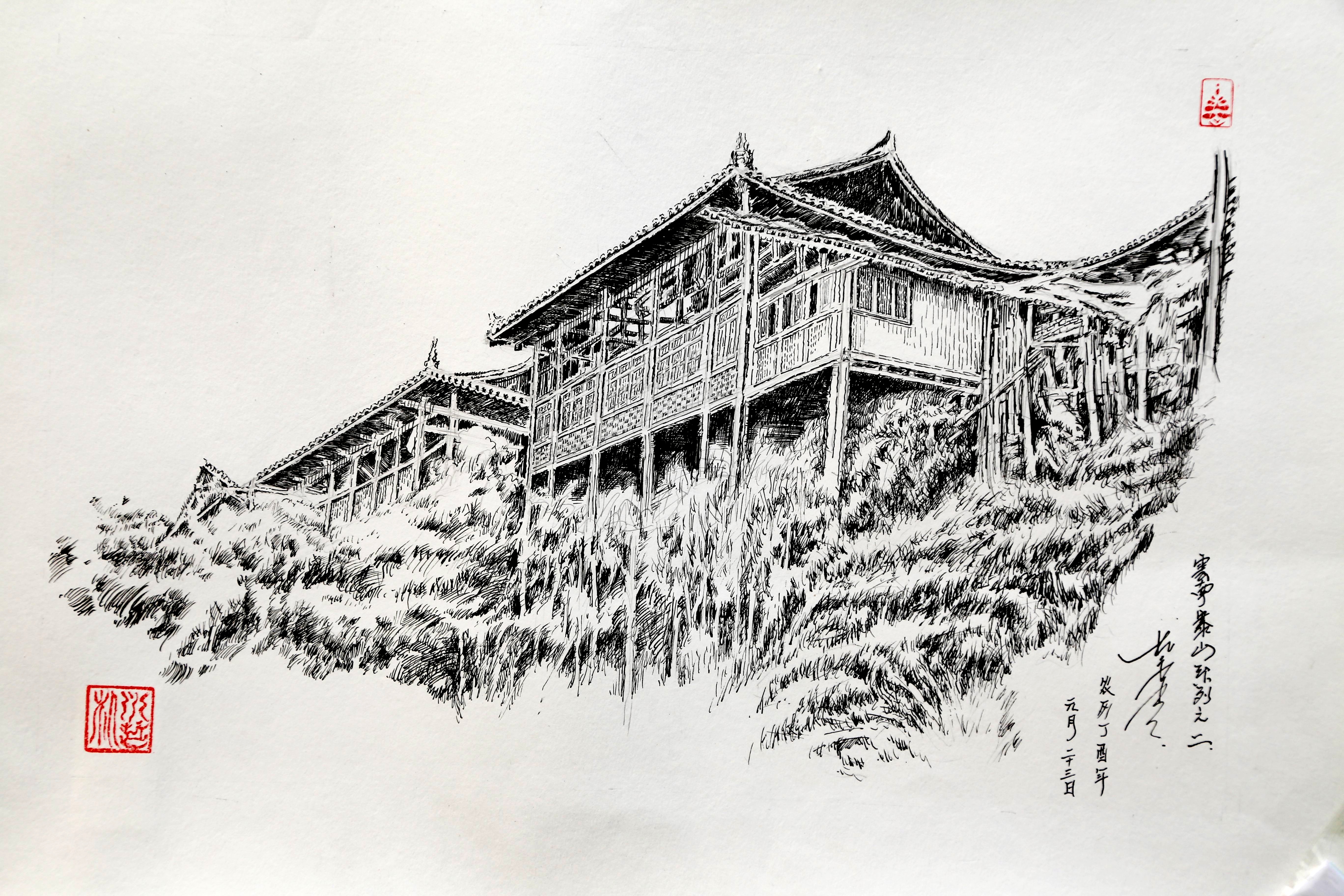 朴永哲钢笔画《云南塞山系列之二》