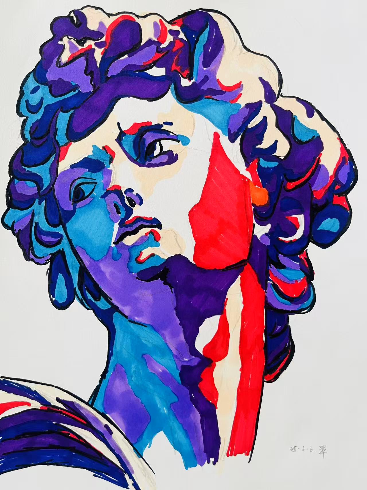 马克笔画《大卫》 作者:崔文一