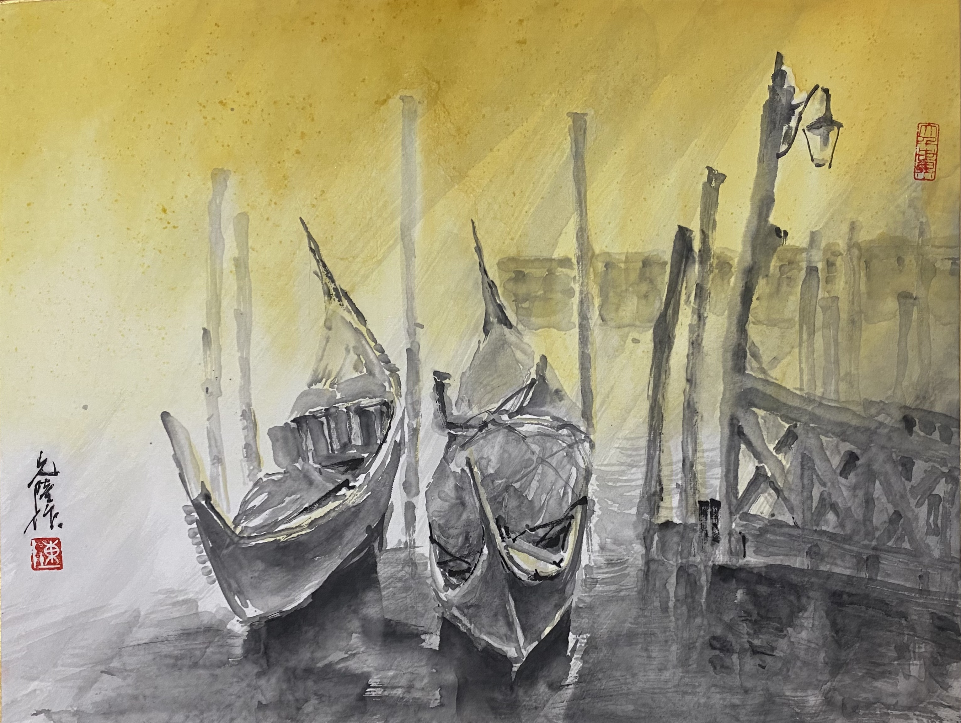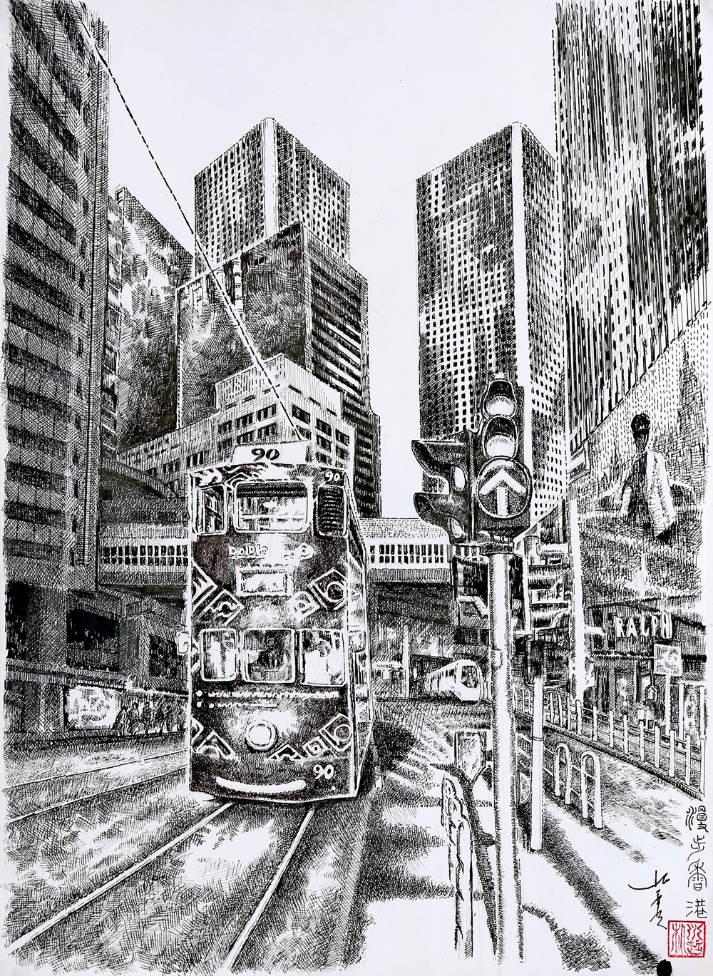 朴永哲钢笔画《漫步香港》年代2025.年7月3日 尺寸:54cmx39cm
