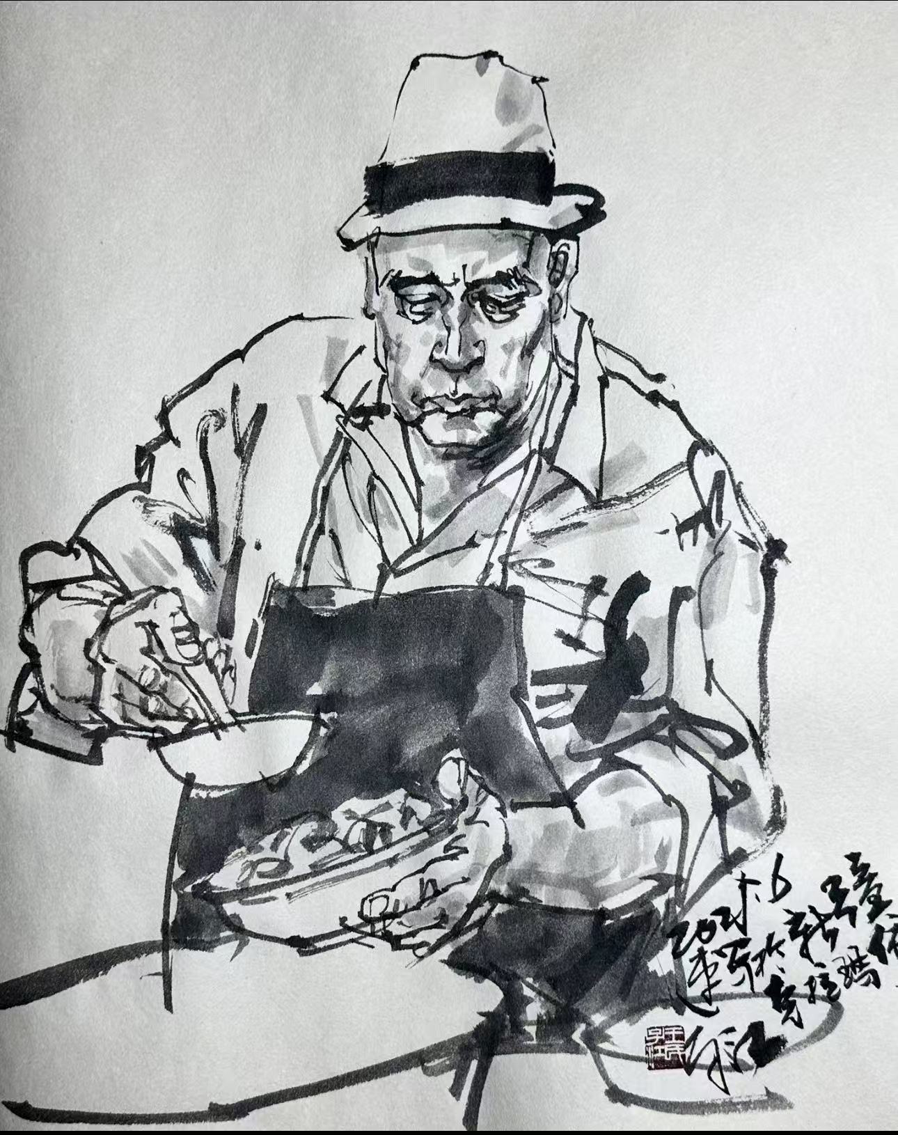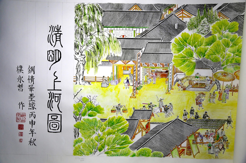 朴永哲钢笔淡彩画《清明上河图》局部之四