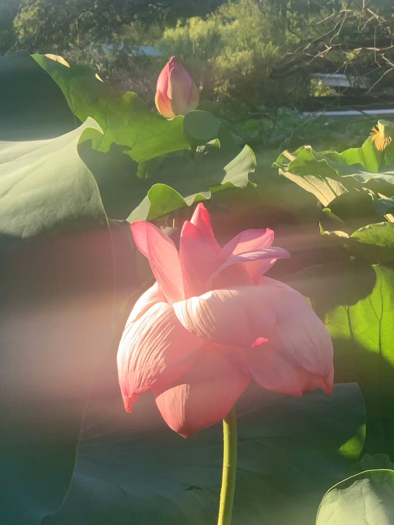 蜂忙采蕊香盈径,翠叶摇风送爽来。