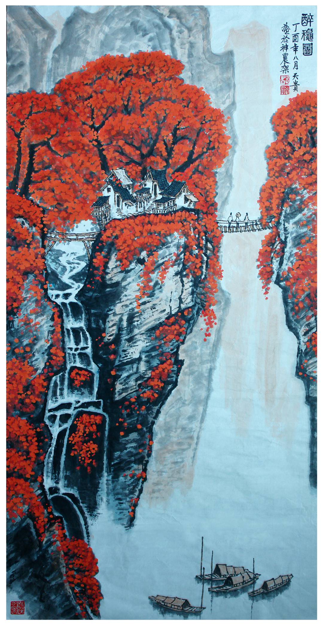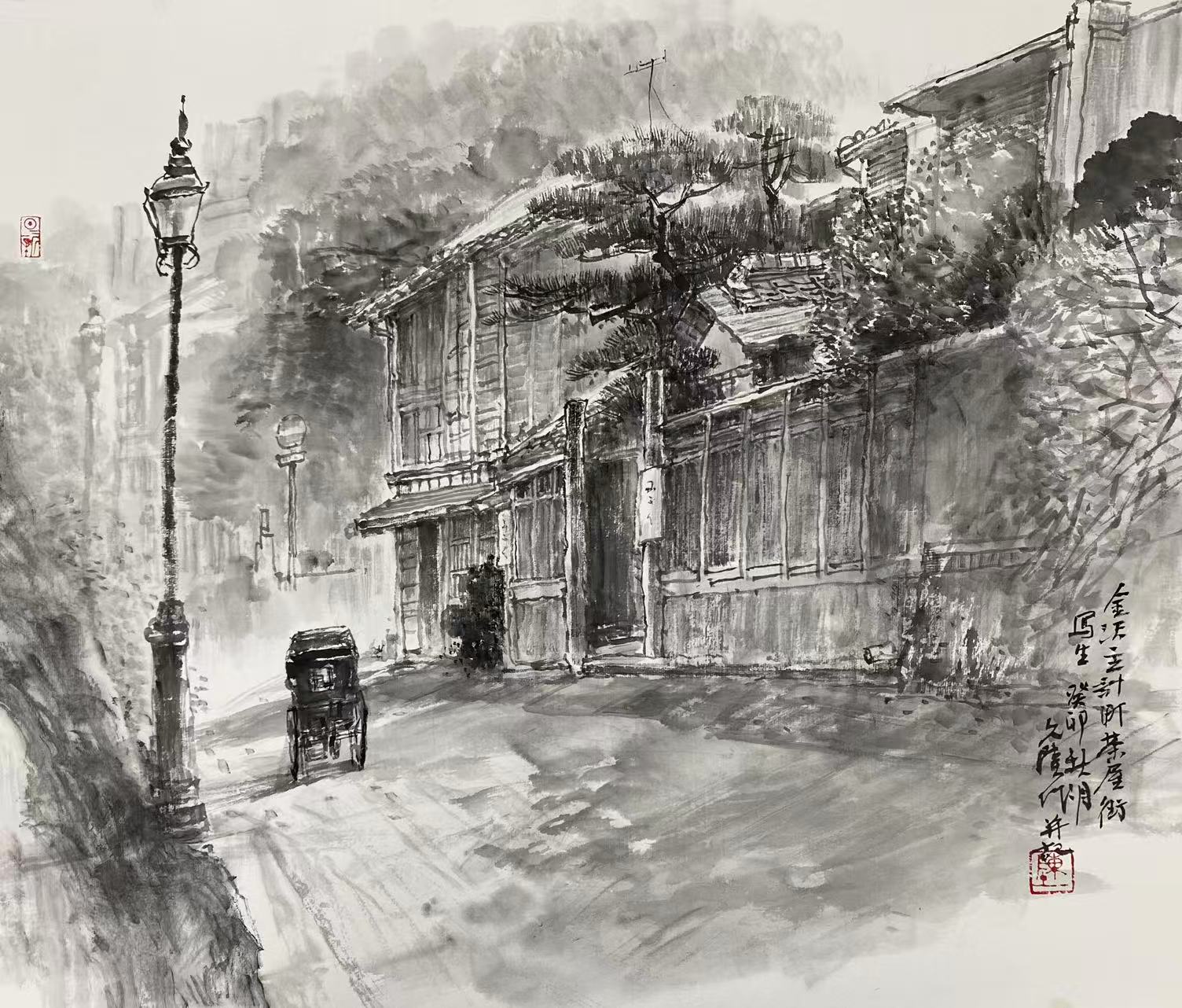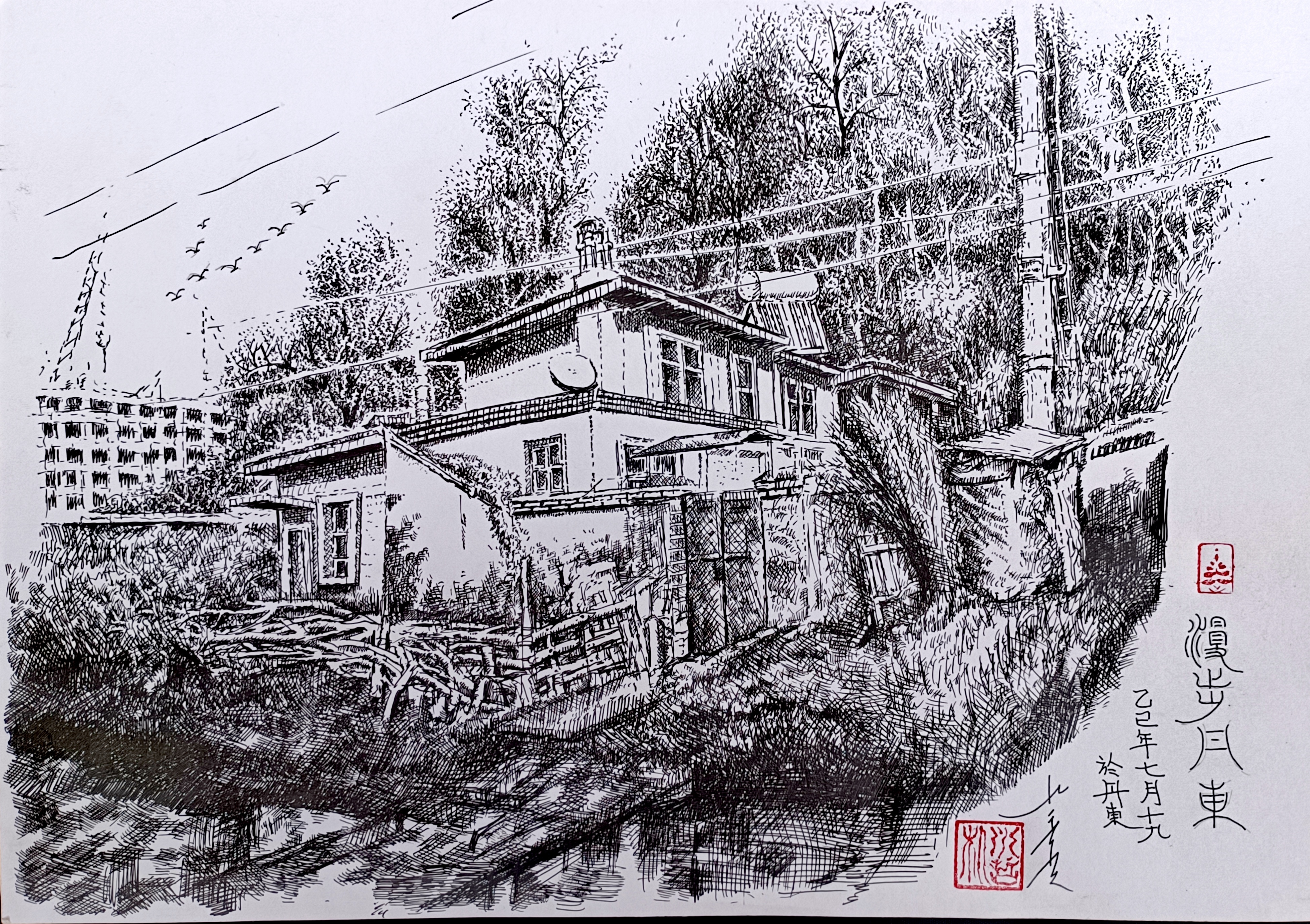陆建新 中性笔迷你五米小长卷《林间漫步》