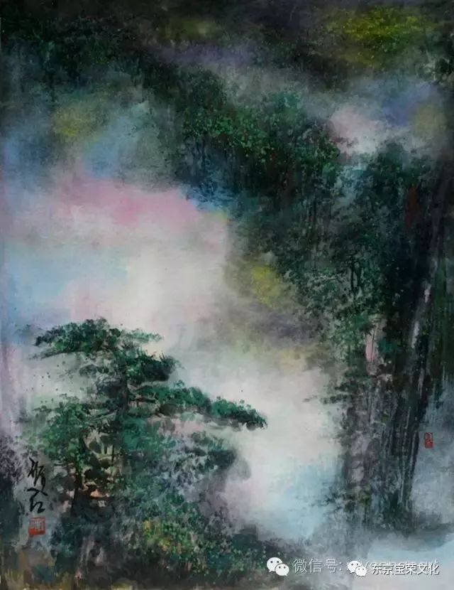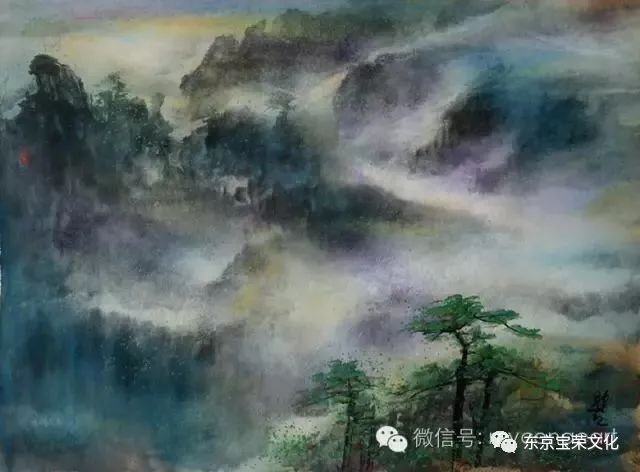 他摆脱了文房四宝、诗书画印程式传承的文人画羁绊。画面上出现了云蒸霞蔚、绚丽多彩的美妙世界,宛如我们梦境中的黄山。