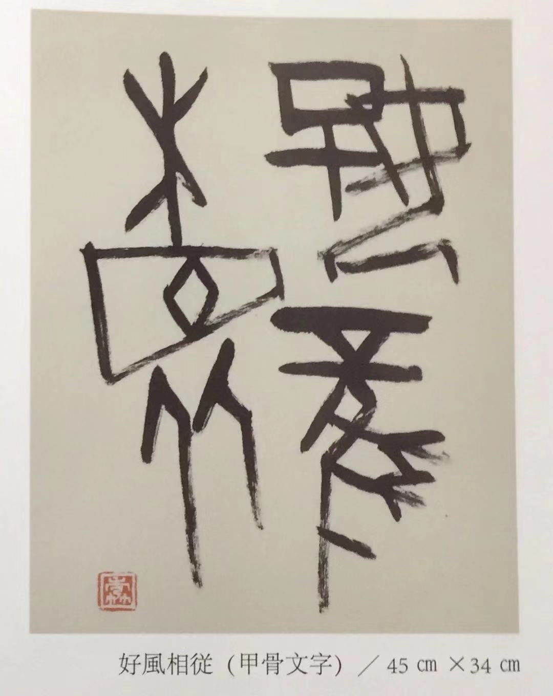 这是日本甲骨文书道研究会会长张大顺先生的卜辞作品,请大家欣赏。