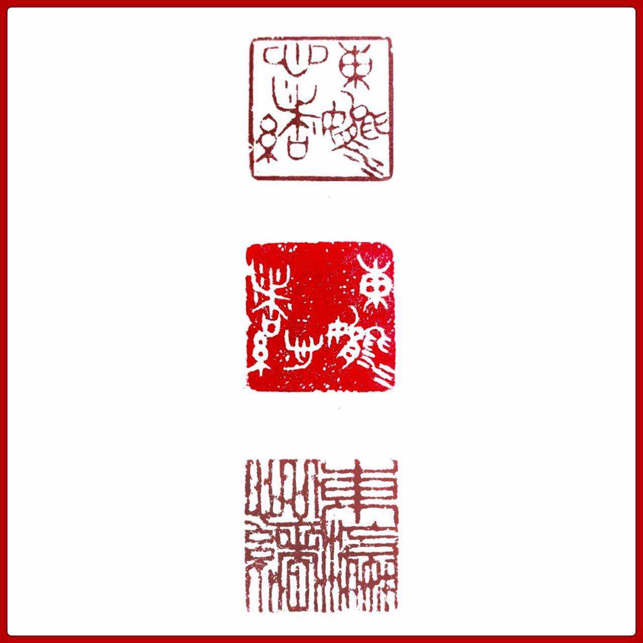 今呈「东瀛心绪」三式及「大吉祥」印作,以为笫三十六期「初心者」三周年纪念助兴!--张大顺