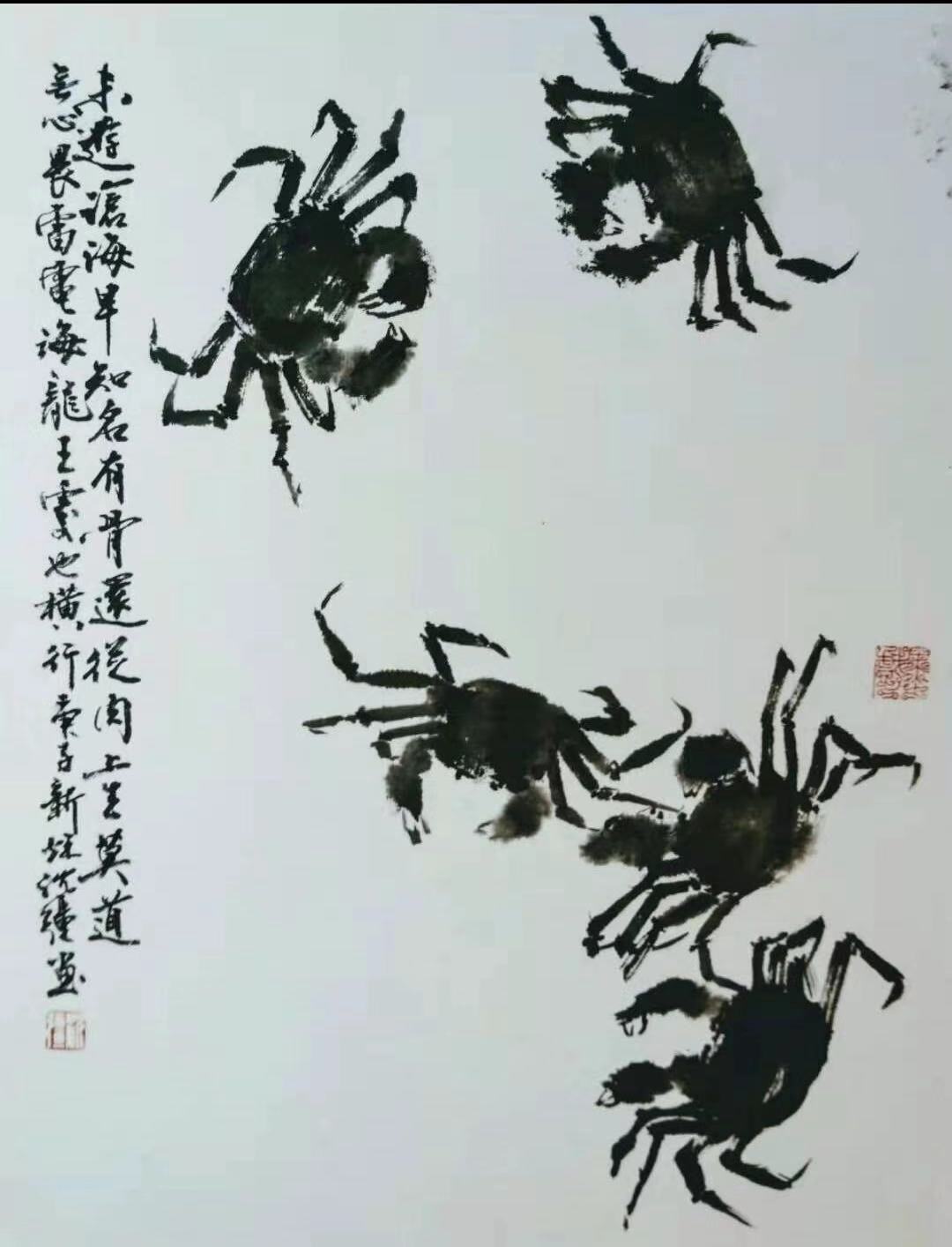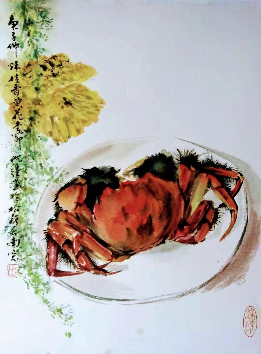 1,2,3水墨.彩墨画:金秋品蟹画河蟹