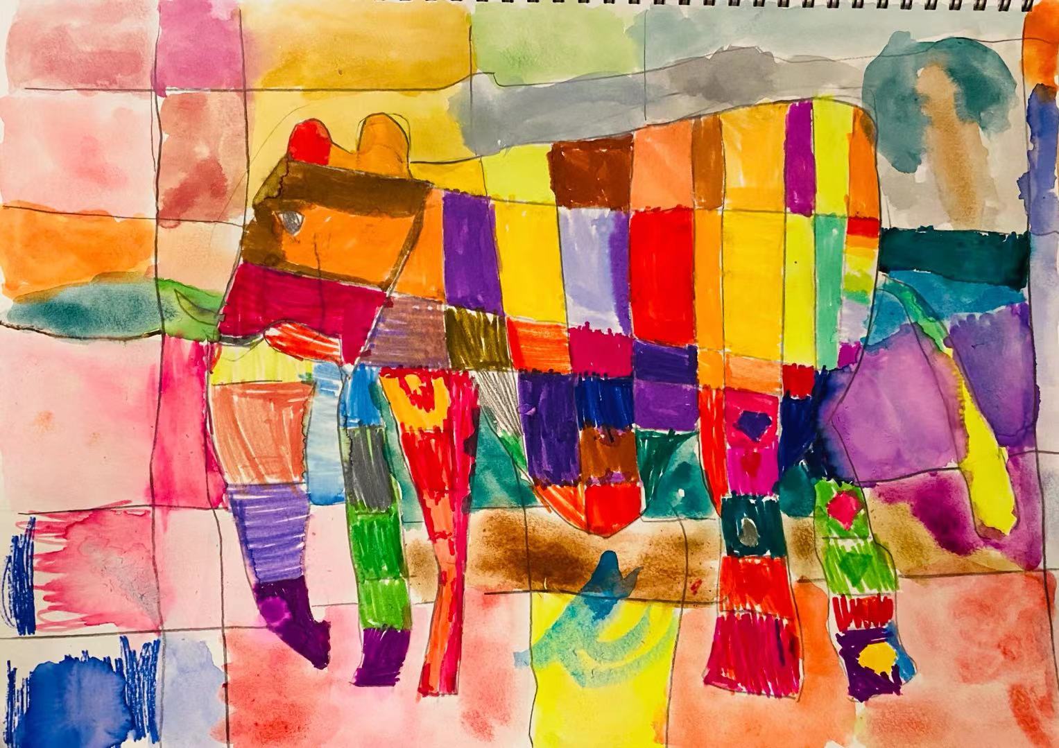 我外孙女刘安诺的大花象!  @赵小华。 童心世界,想象力无限!