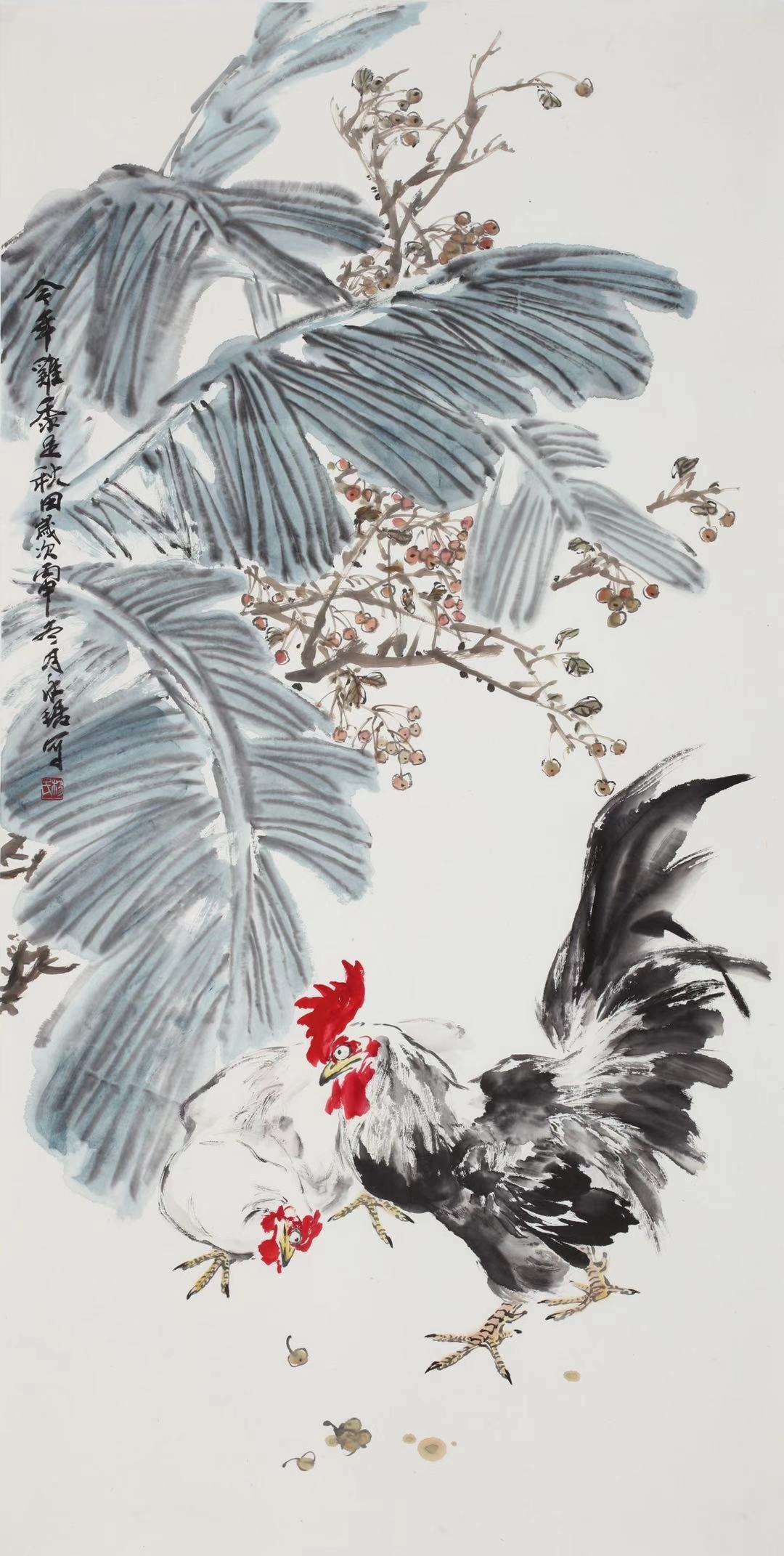 @杨永居 老师清新自然佳作不断!@杨永居 淡雅高贵的双鸡图