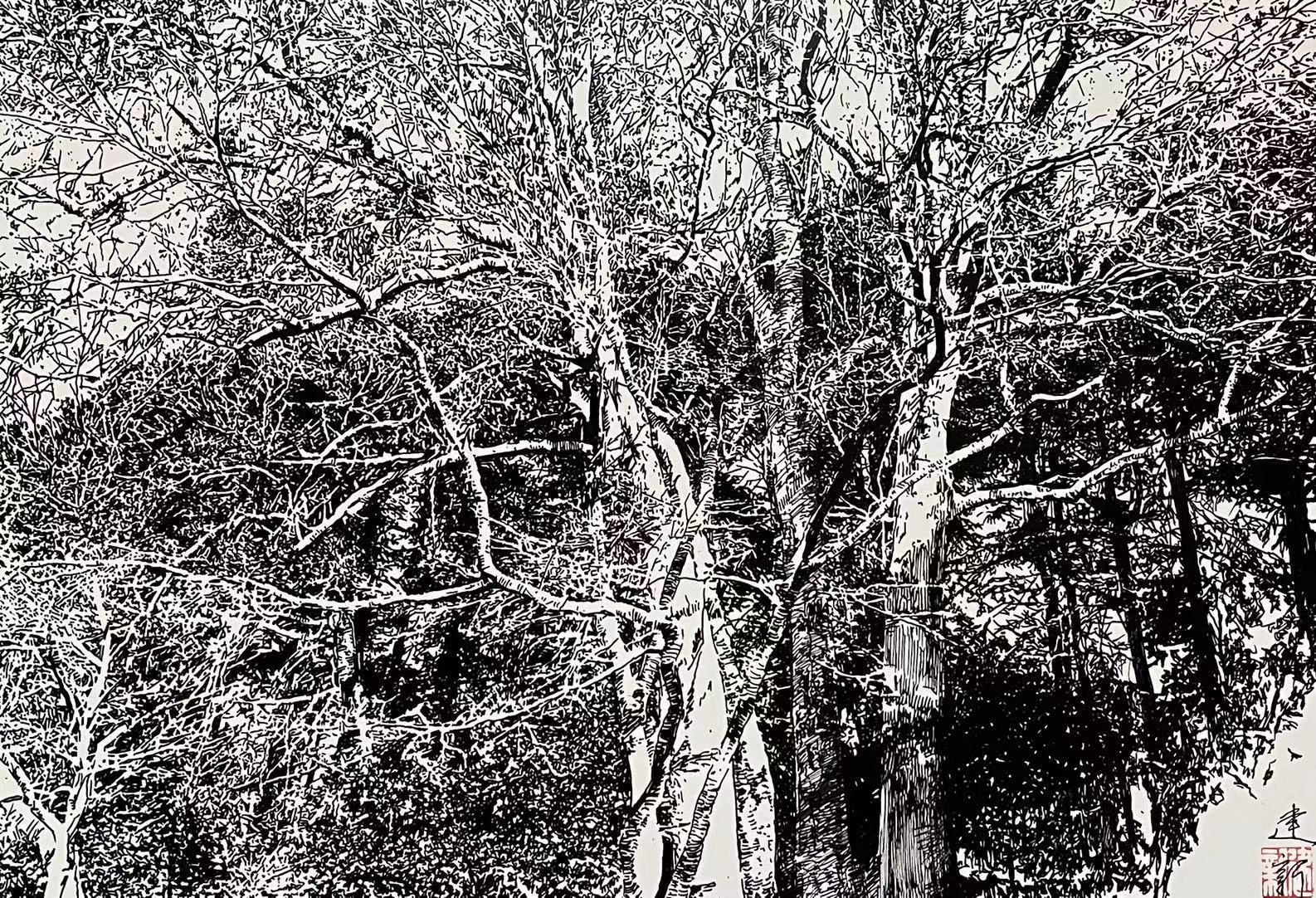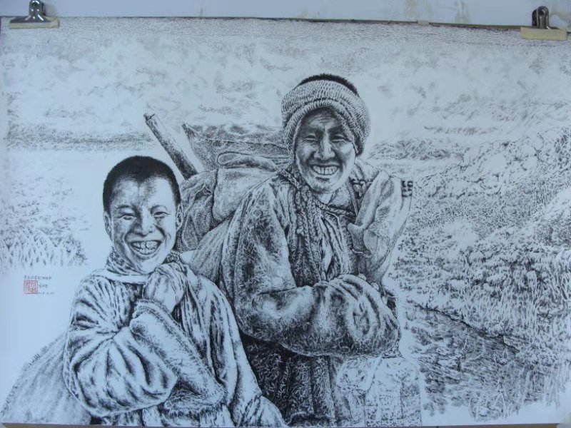 朴永哲钢笔画人物与风景题材钢笔(黑白)画真迹原创品