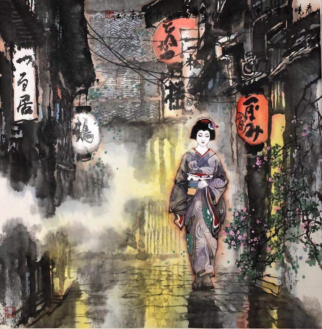 又见您的美作,很喜欢,尤其这几幅和服女子图,用水墨表现,尤其有韵味