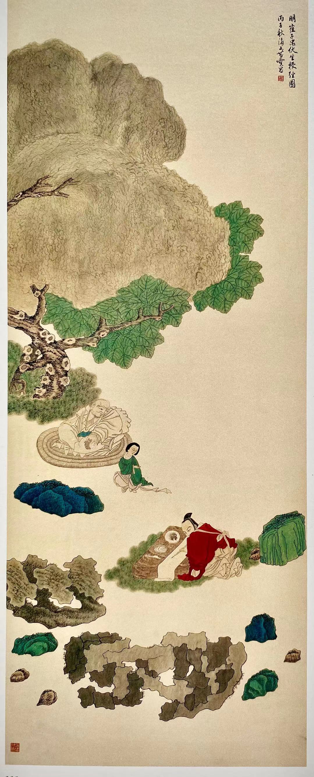 仿崔子忠"伏生授经圖",绢本设色,193x87公分。