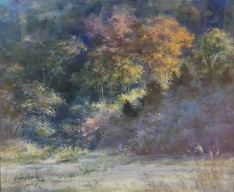 两幅重画改进后的习作《河口湖畔》《新宿御苑自然林》