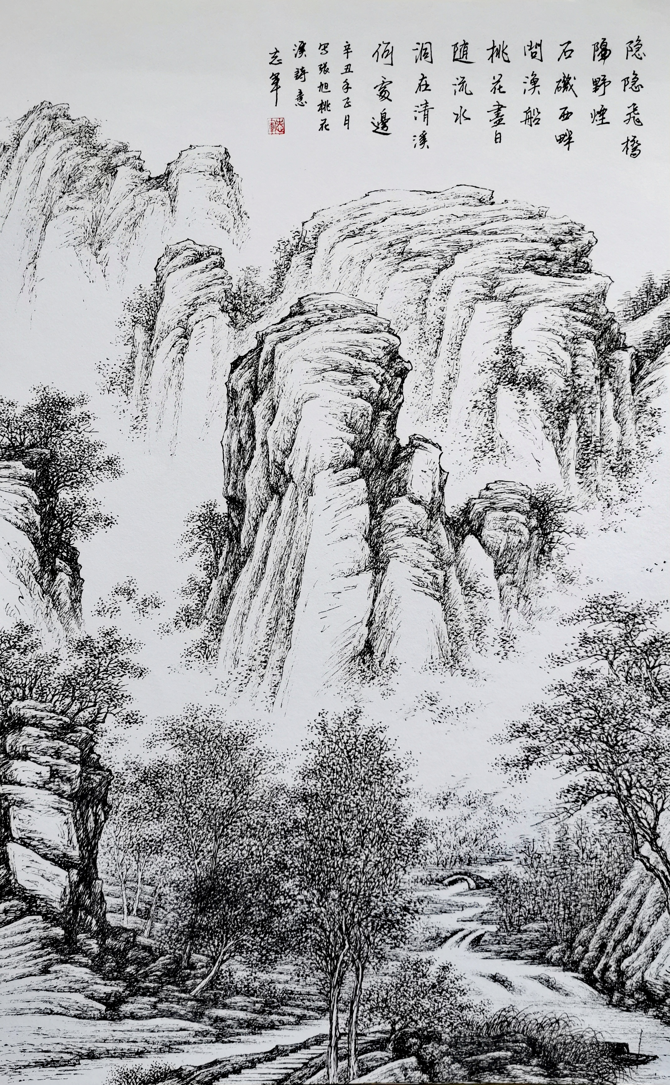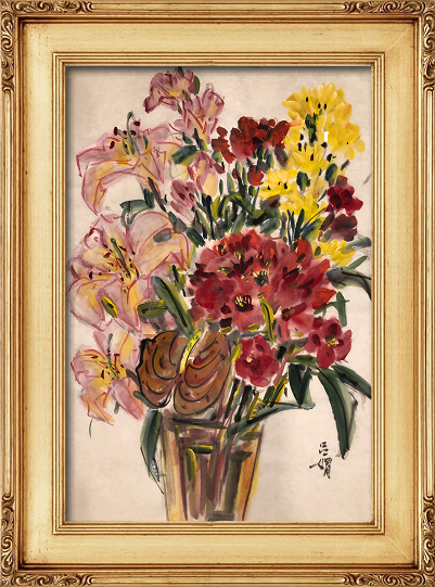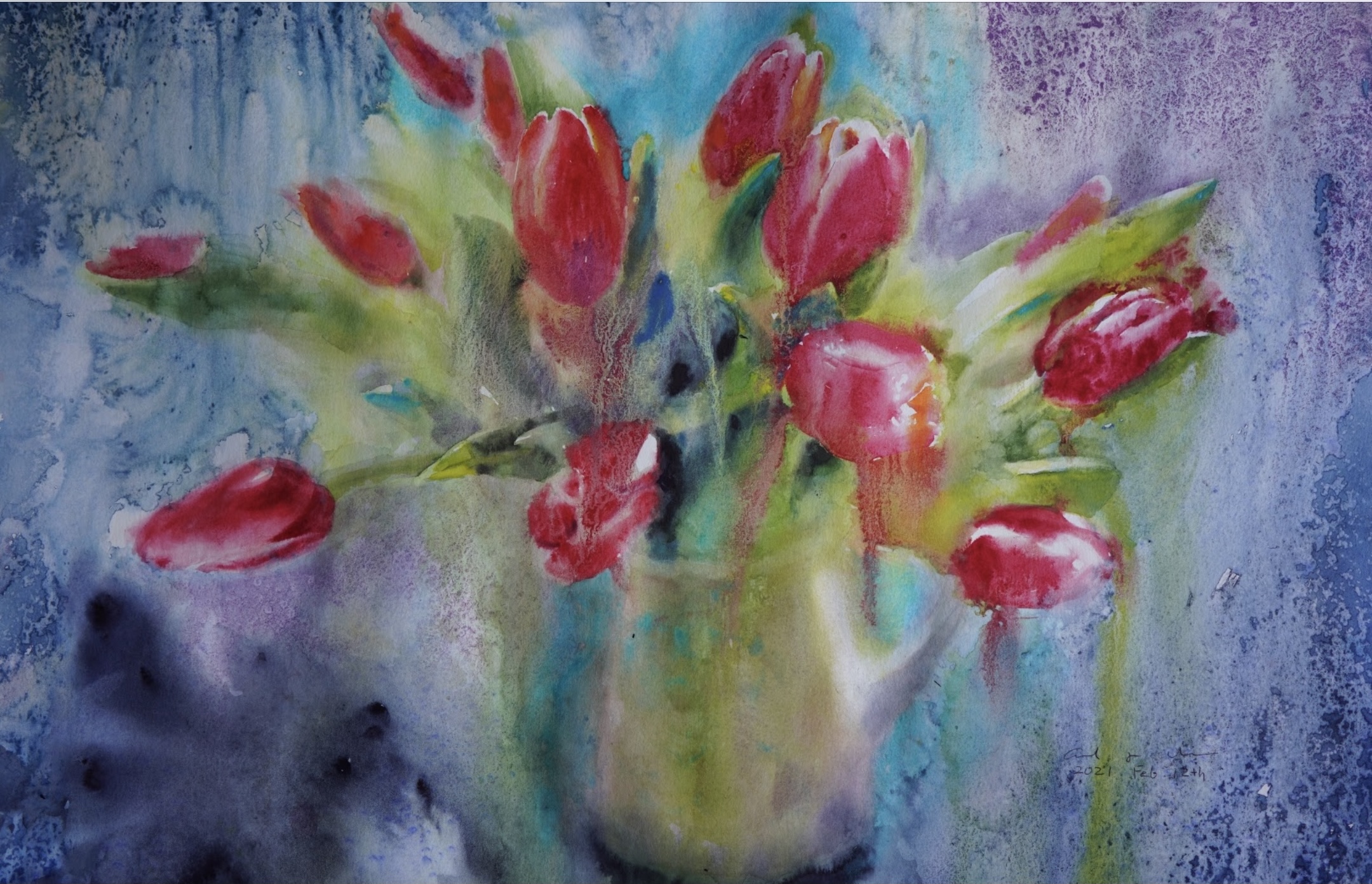 居住福冈三年,所知甚少,这里人烟也稀少,更不晓得画友在哪里?迷茫至极。辛丑年初,有幸入东宝沙龙;得知诸位先辈初心所致,追求艺术种种,吾以为此乃艺术之真谛--无国界,无年限,丰富多彩,包容尊重、百花齐放;且有高人指点迷津,甚好。三月,一年之初;春耕劳作,方得秋实。初心不变,坚持不懈。遂以此督促小辈,每月完成一幅小作,渐行渐近。新冠入侵一年之久,诚惶诚恐,然而有初心相伴,加之疫苗接种,想必未来一定可期。