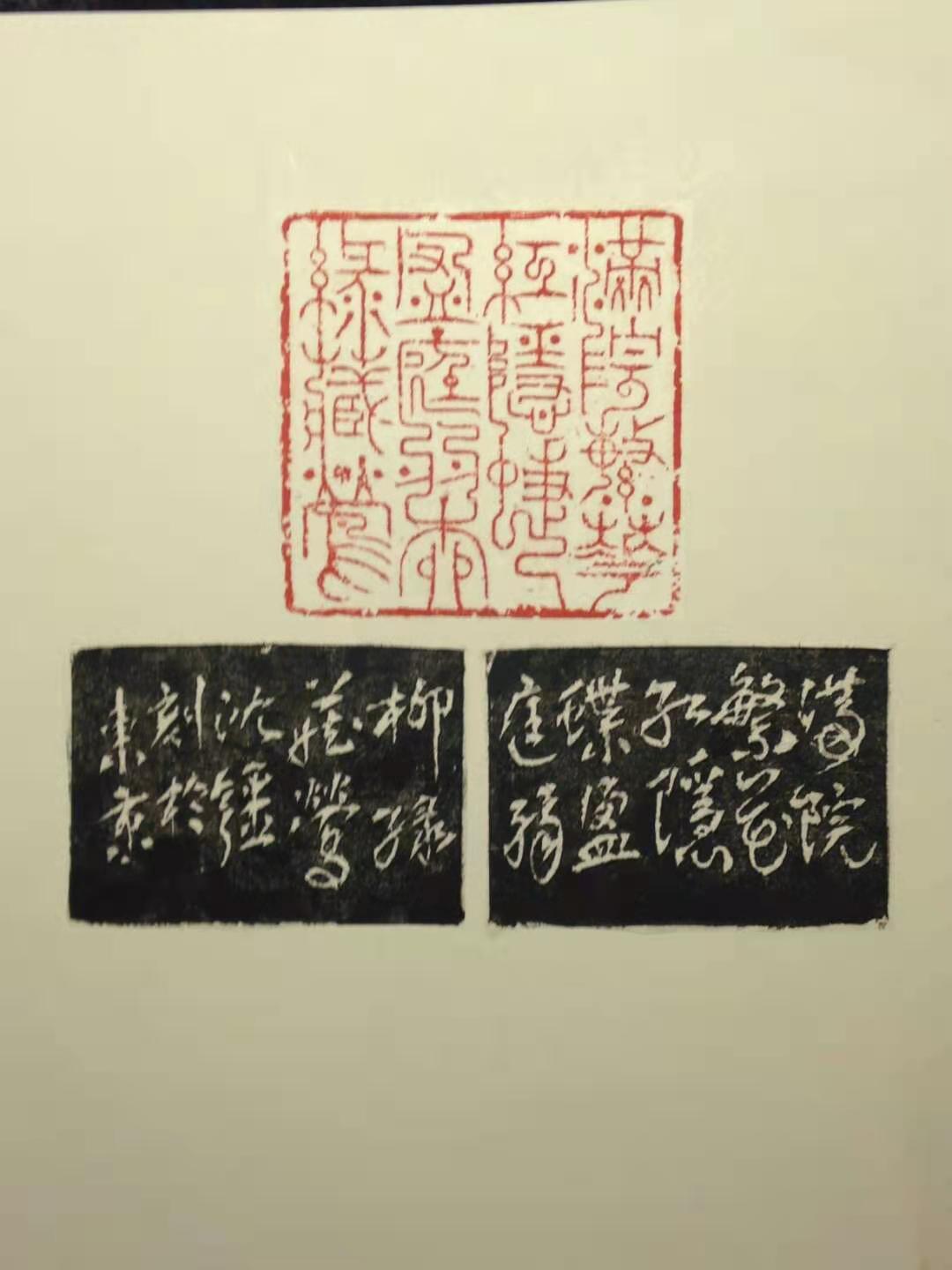 满院繁花红隐蝶,盈庭弱柳绿藏莺。(沈強篆刻)
