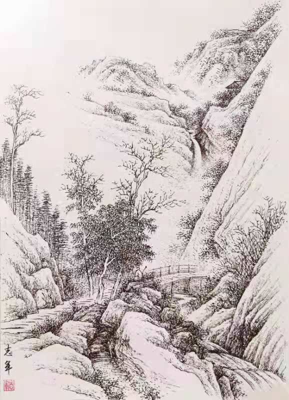 纸本册页.宋人"戏婴图"  纸本册页."黄山写生"