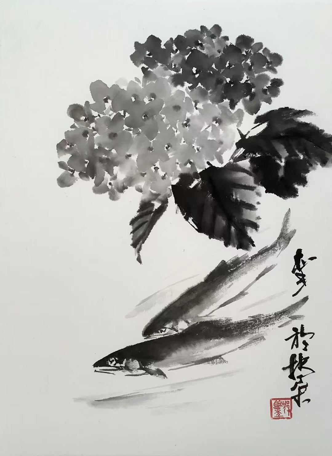 作者  沈 和年   笔轻墨分彩,鱼游花自闲。