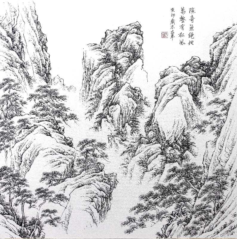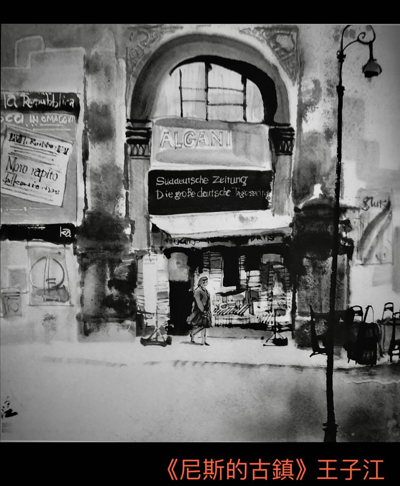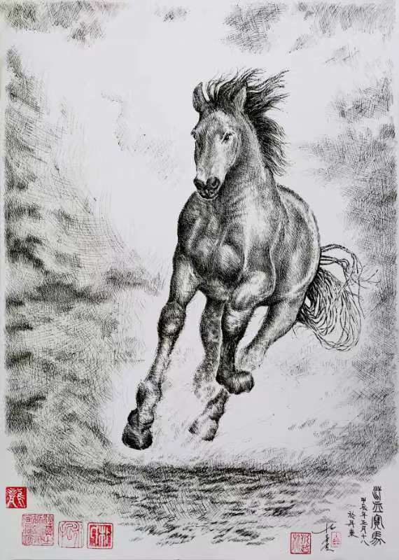 中性签字笔和马克笔画《粽榈林》  陆建新