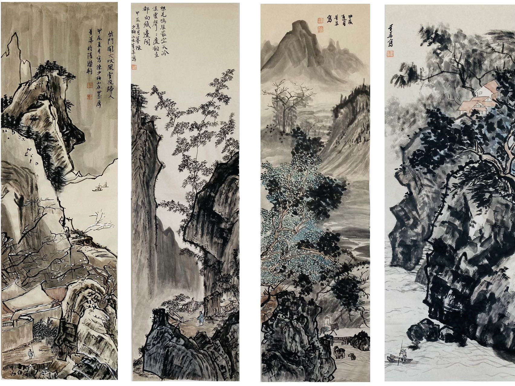 国画作品四条幅。作者:董華