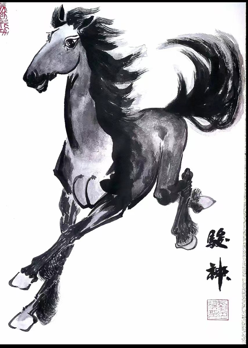 朴永哲钢笔画《一帆风顺,骏马奔驰》