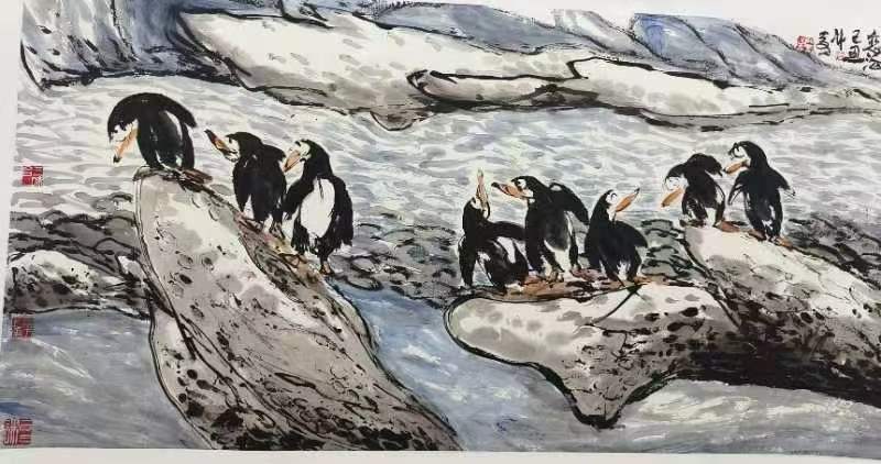 笔底风雷惊四海,画间云水动心弦。超凡妙手震尘寰。
