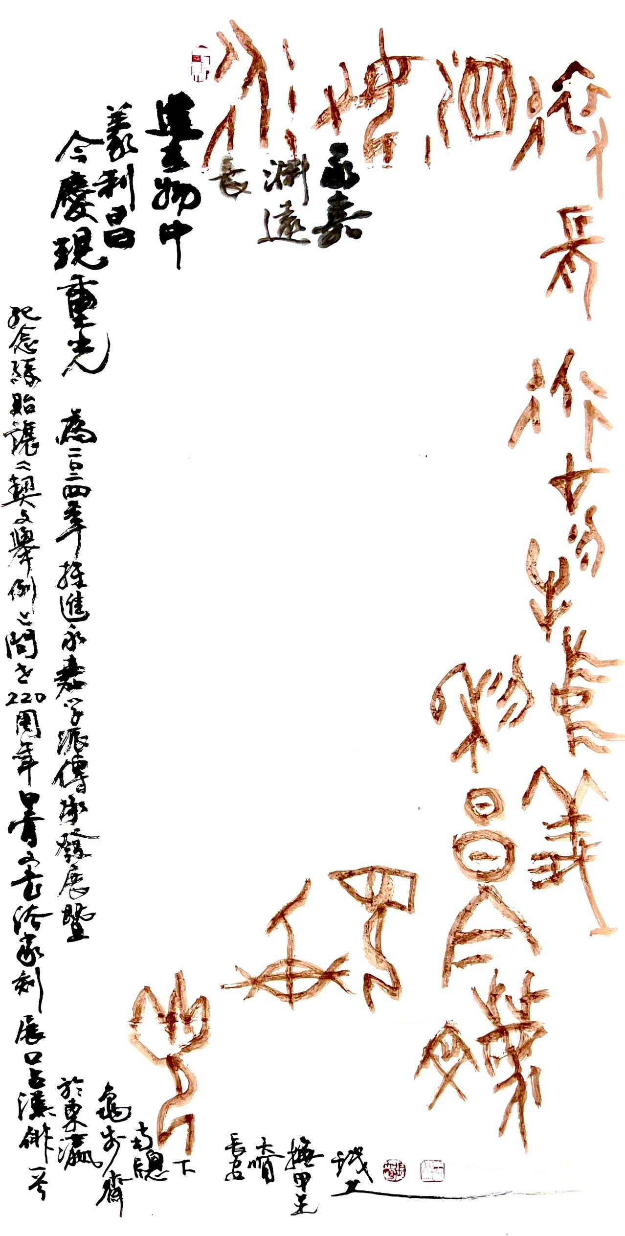万里长江接远天,千峰竞秀展奇观。淋漓墨色意绵绵。
