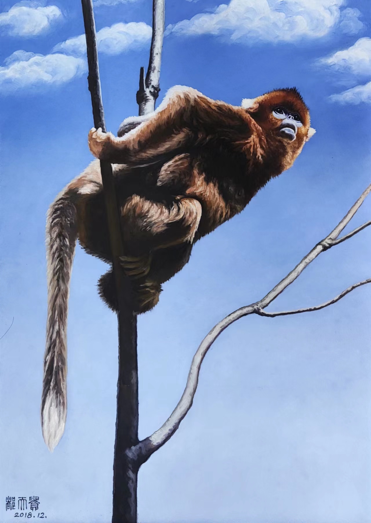 都天贵金丝猴油画“眺望”