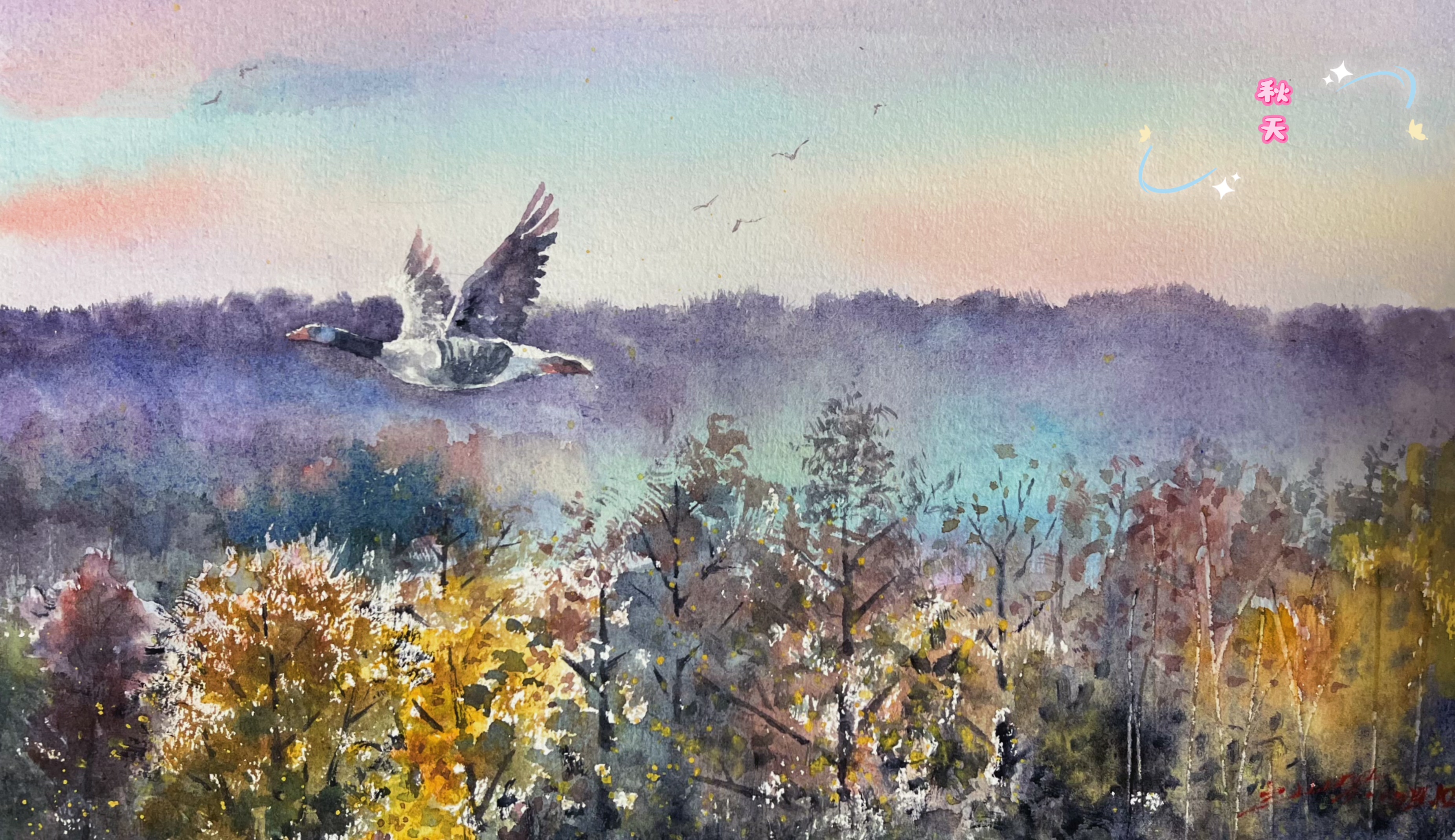 写意水彩《秋》️ 郑训兴