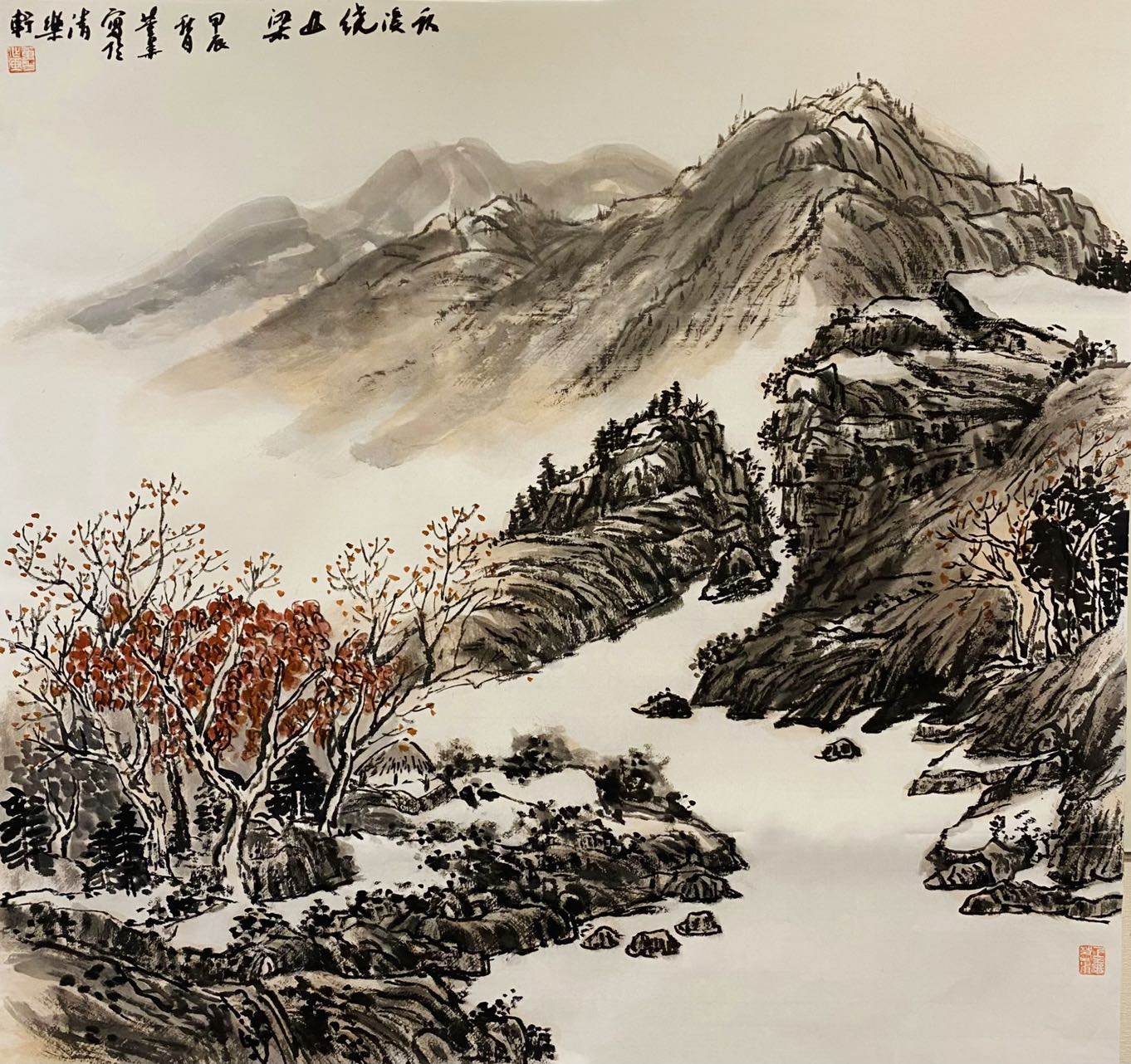 微塑石艺景观《远山秋色》局部和全景 陆建新
