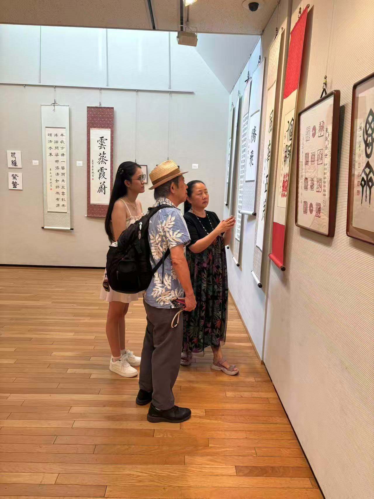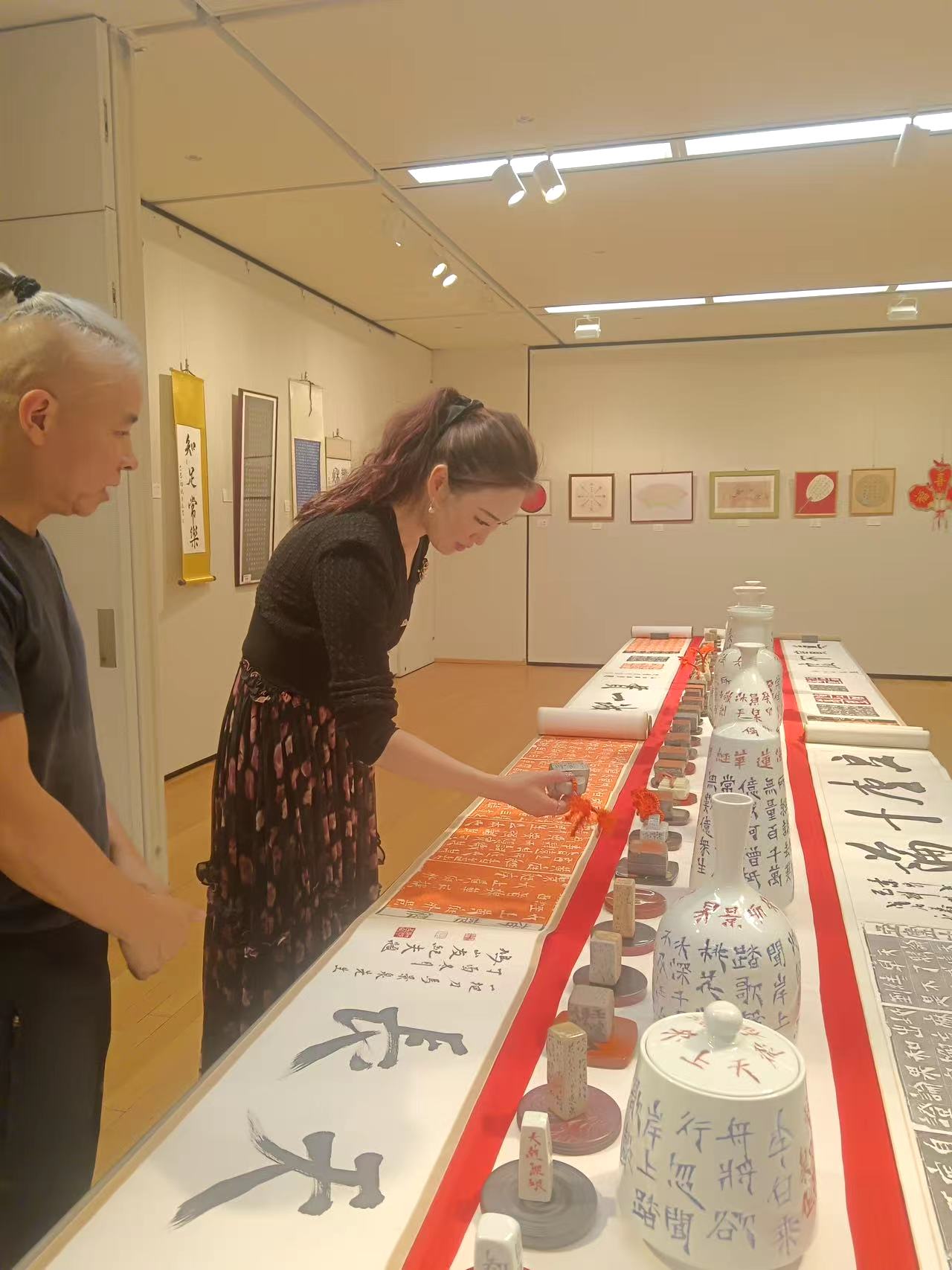 同样是书法,崔璇女士的作品又展现出不一样的世界,洒脱的笔锋,张扬处又透着内敛。有美观的二十四节气选篇,有耳熟能详的经典诗句,还有寓意美好的四字吉祥语,但我印象最深的却是那副《曹全碑》的字帖,它激起了我去读原文的好奇。远观那一幅幅字画,我想象着祖先们创造的篆书、隶书、楷书和行书,它们跨越千年,来到异国的展厅里,自由地碰撞着、交流着,这一笔一画正向我们,以及我们的下一代昭示着汉字的魅力,传承着中国文化。