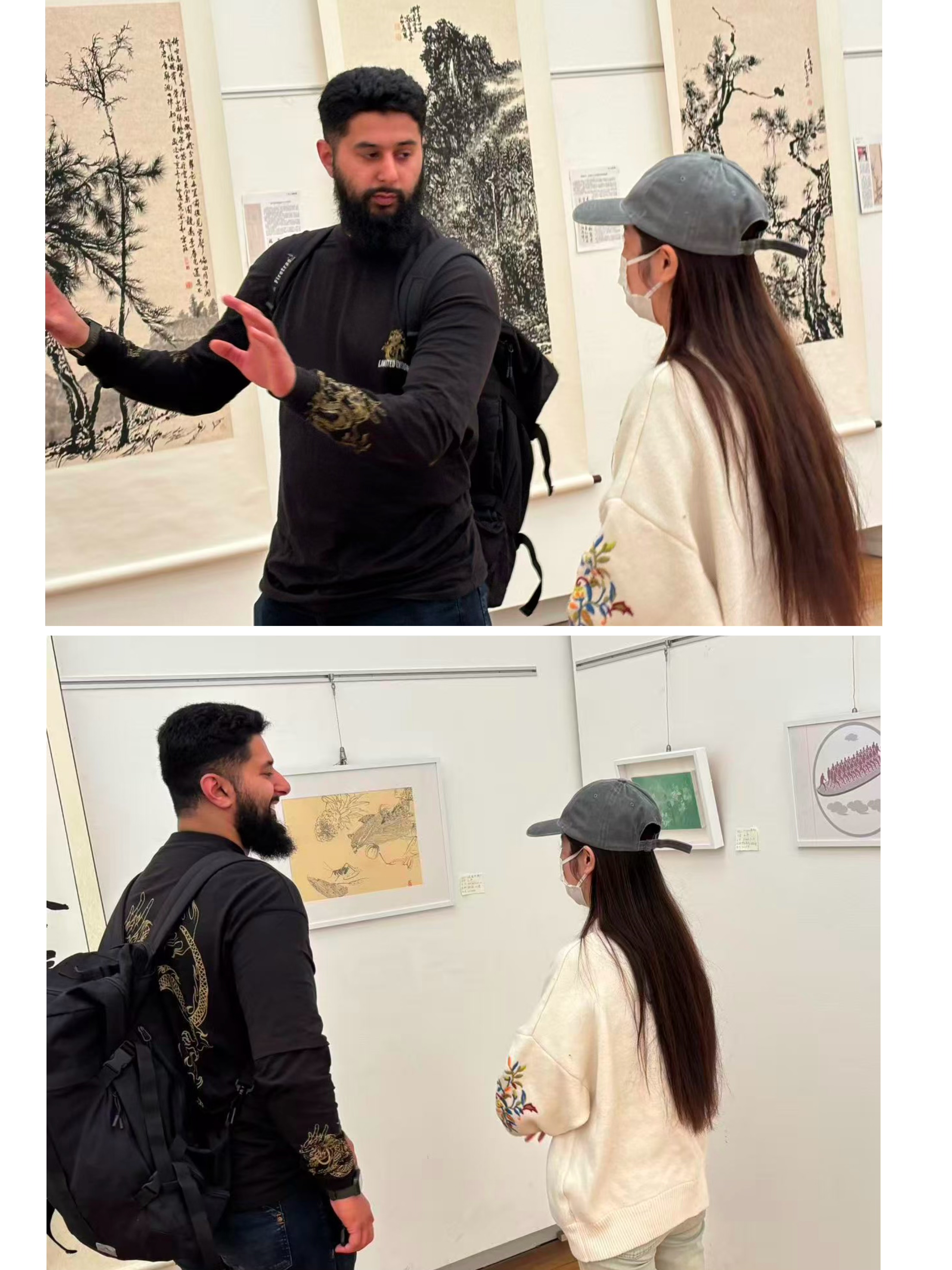 图为这位英国观众,正在与花鸟画的作者王卓进行亲切的交谈。