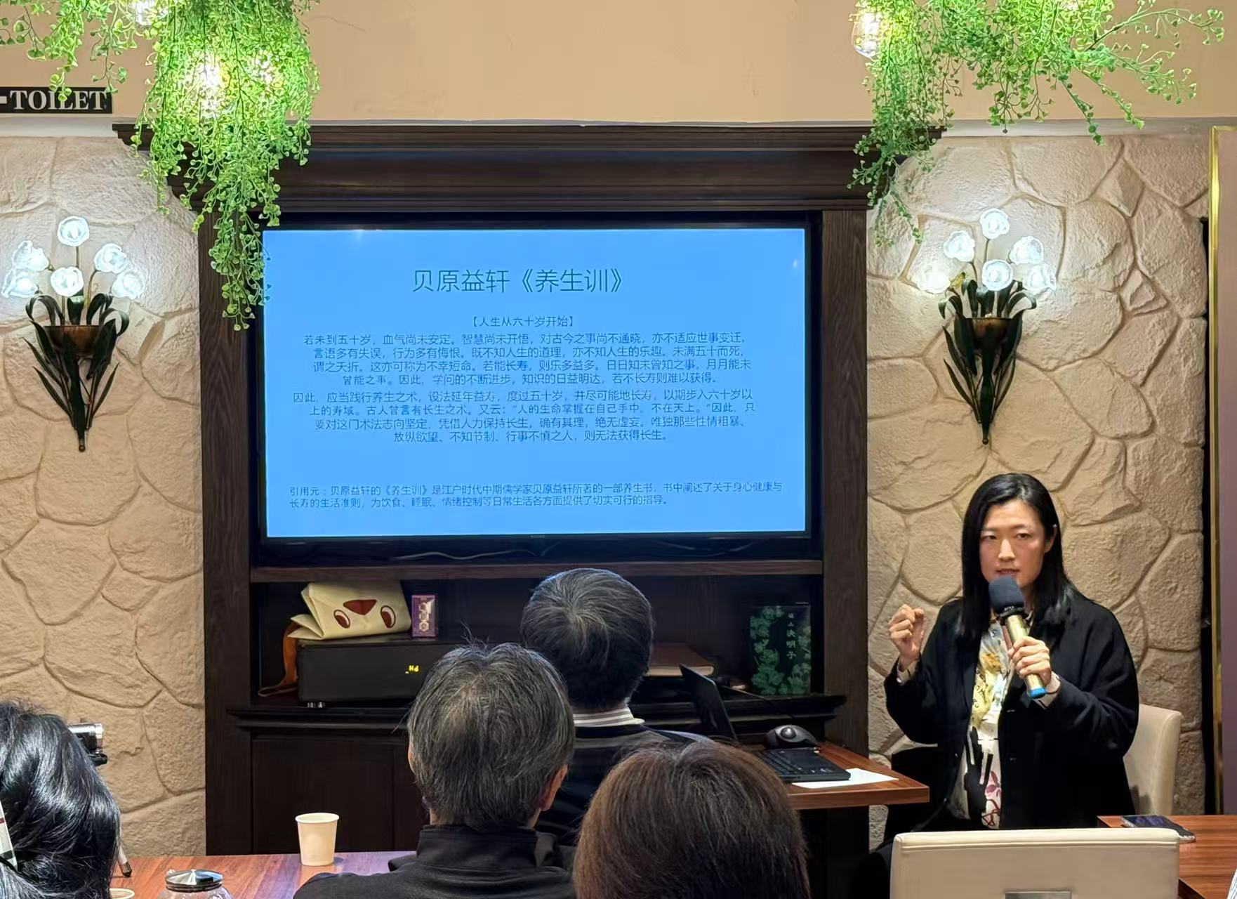 随后,一般社团法人日本中医药协会会长周军医生带来了题为“中医怎样防止出现衰老的智慧”的精彩分享。她从中医理论出发,结合现代生活方式,讲解了延缓衰老的核心理念与实用方法,引发了听众的广泛共鸣。