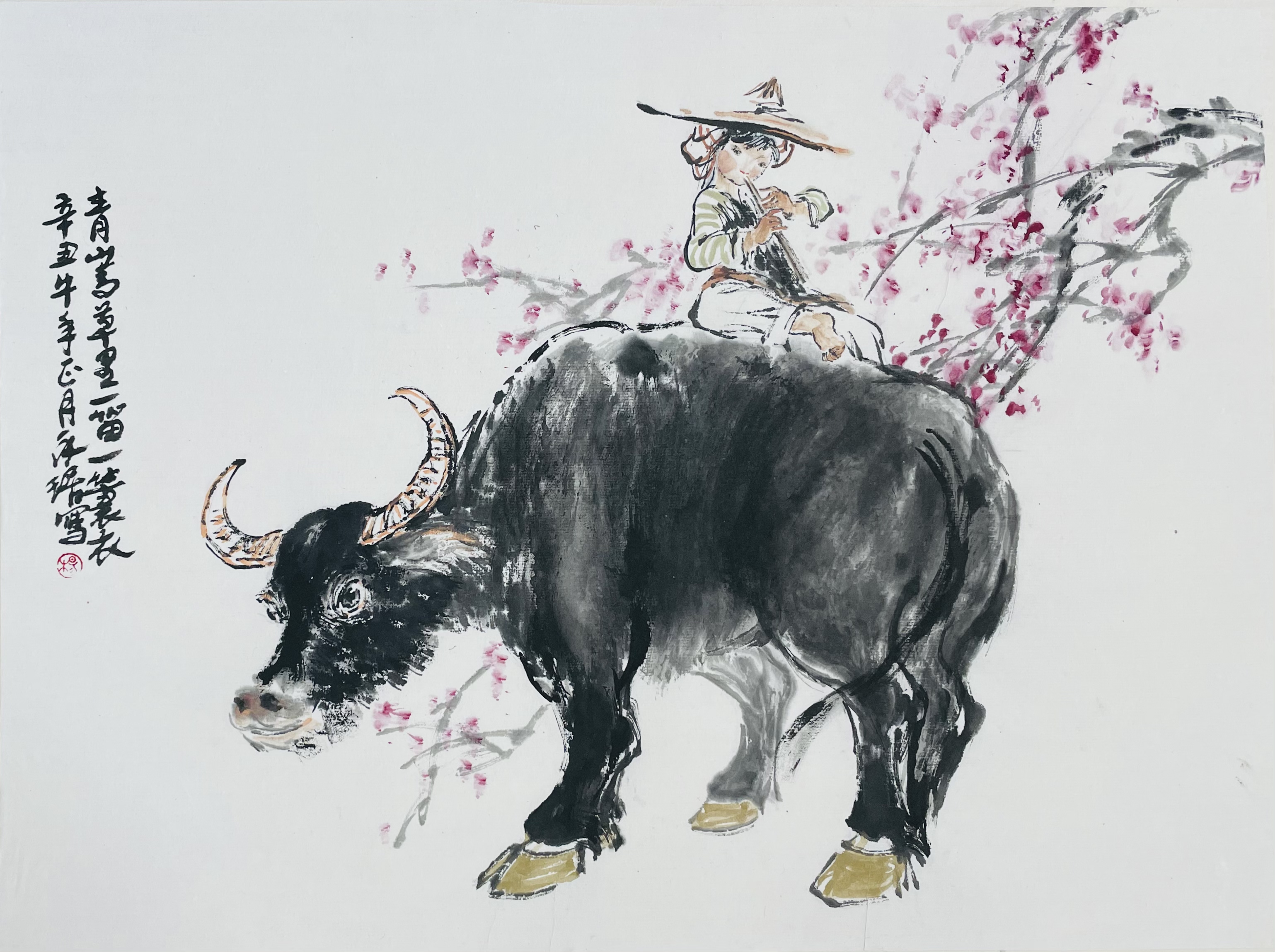 日本总理大臣奖获得者杨永琚的"牧童小品",尺寸虽然只有一平尺,但却高潮叠起,扣人心弦,取得了开拍的好兆头。