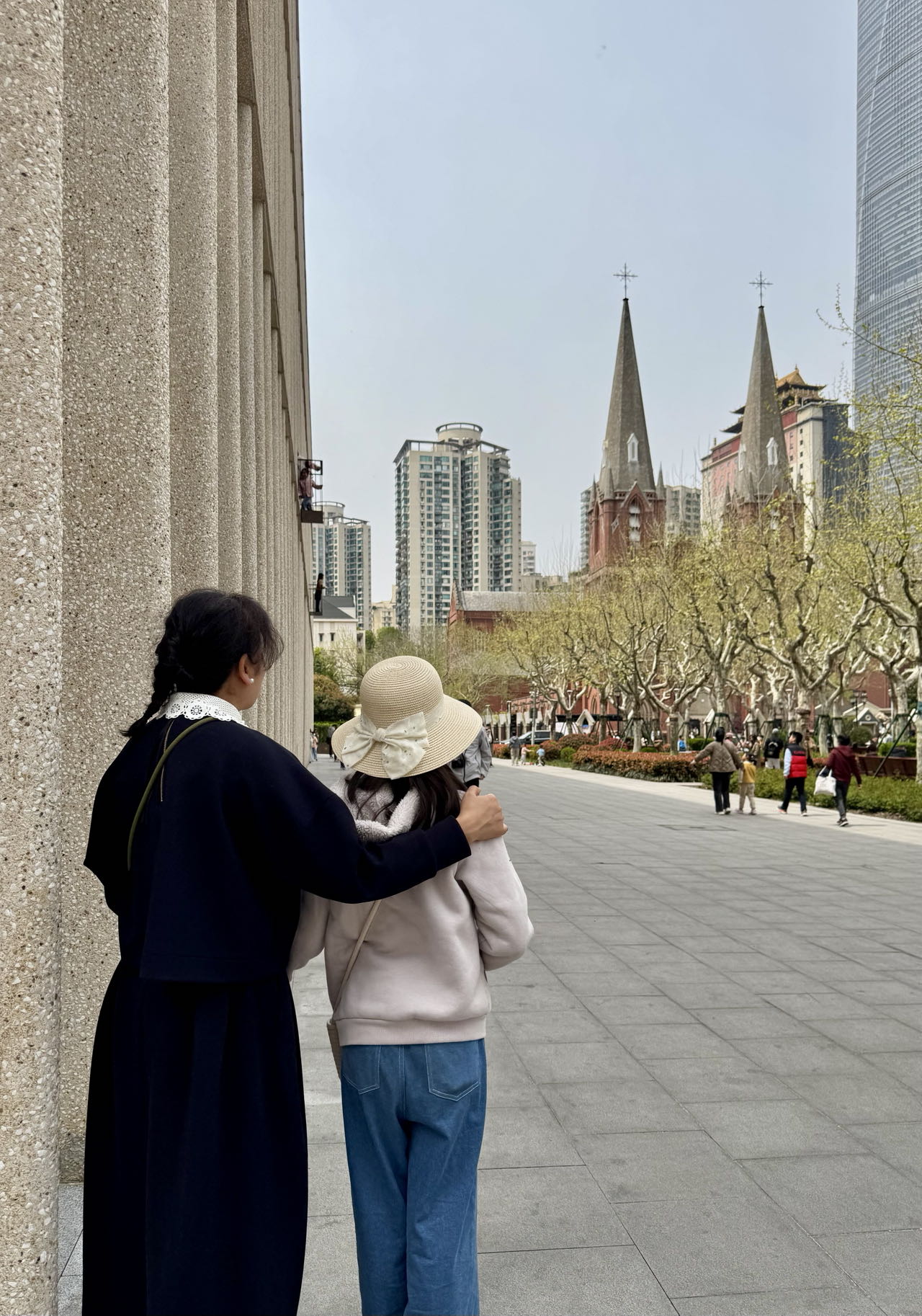 路边绿草已经茵茵,走着走着进了徐家汇书院,寻一个角落,远眺那天主教堂,心里莫名地惆怅起来。真的,父亲离世几余年,年年惆怅清明,我想爸爸了,所有的思念在记忆中泛滥开来……