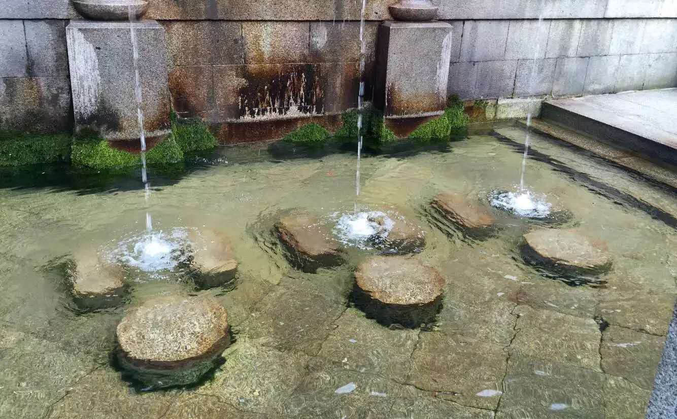 整个寺院,以入口处漆红的清水舞台和音羽瀑布最为热闹。我随人流慢慢行进,准备前往音羽瀑布。瀑布为三股清泉,依次代表着长寿、健康和智慧。泉水顺山石细细倾泻而下,人们拾阶登上亭台,行至瀑布之前,取长柄舀状容器,纳一掬清泉饮之。据说,三泉只能择其一,不可贪饮,否则便不灵验。