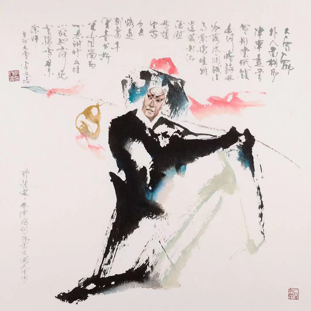 文培兄在他独创的戏曲人物水墨画中,他成了一位非常了不起的魔法师!