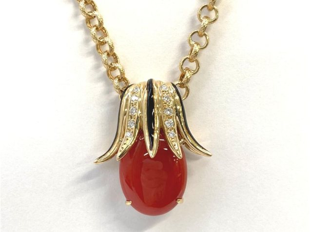 吊坠的背景是拉里克为爱妻爱丽丝(1870-1909)于1898年购买的巴黎郊外枫丹白露的森林,《冬景色》正是创作于这一时期。爱丽丝是拉里克的第二任妻子,两人于1902年结婚。爱丽丝的父亲曾经在法国雕刻家罗丹(1840-1917年)的手下工作,爱丽丝富有才艺,又是拉里克的好助手,两人在艺术上产生的共鸣,可以在共同创作的水彩画中得到见证。爱丽丝无私的对拉里克的奉献,也使拉里克深爱着爱丽丝。即便如此,这并不能阻挡拉里克以同样的热情回报他周围的红飞翠舞。我们无法用当下的道德是非观来评价一百五十多年前的法国艺术家的私生活,然而至少在当时,我们从拉里克的众多的作品中,可以发现他是一位女性主义者,而正因为他是一名女性主义者,也最后导致了爱丽丝的悲剧。这样的评价或许对于一名精力充沛的正当年华的艺术家来说是苛刻的,然而事实是在与爱丽丝的婚姻关系之外,拉里克绝不缺少女性朋友们的支持,甚至于能为拉里克“献身”的女性朋友也大有人在。在郁郁寡欢中爱丽丝年仅39岁就过早的因病离开了这个让她既爱又痛的世界。曾经的缪斯女神在1909年拉里克作为玻璃工艺家开始正式起步时的离世令人扼腕。生前的爱丽丝是拉里克珠宝设计灵感的源泉,过世后拉里克也没有忘记亡妻,我们依然可以在拉里克设计的玻璃香水瓶上发现爱丽丝的面影。