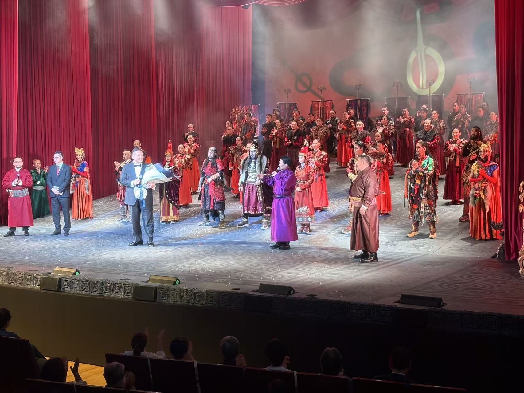 我非常幸运的观看到十月十日的首场演出,不仅享受到了高水平的艺术盛宴,由于那些蒙古国出身的相扑届名流,几乎全都来捧场,这场首演更是无与伦比了。