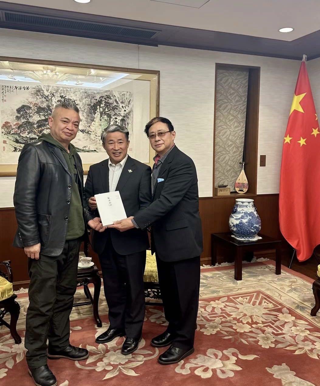 作品说明:向中国驻大阪总领事薛剑赠书