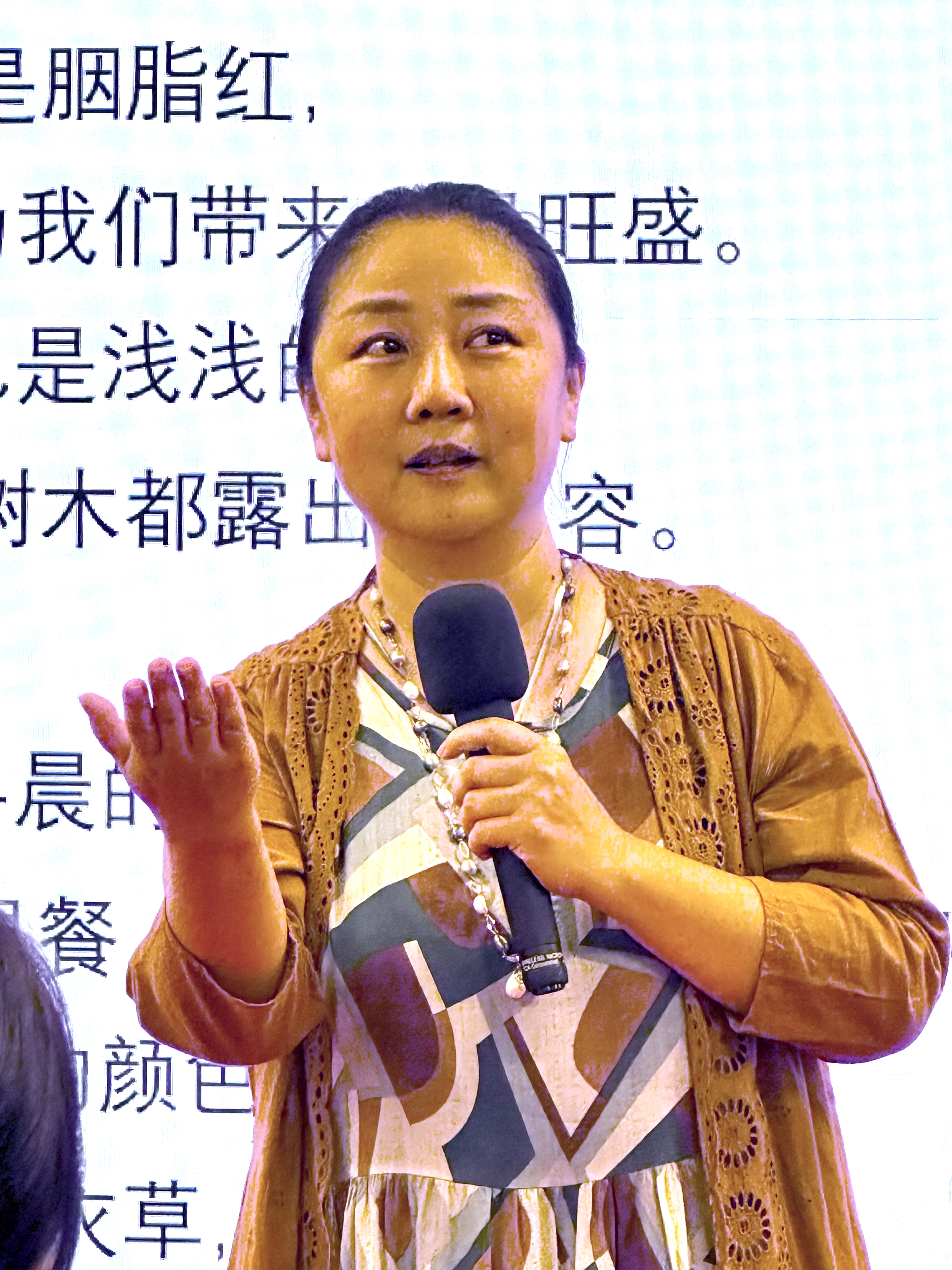 开场第一篇。是卢思老师诵读的《早晨的颜色》,我听着看着,已经是禁不住热泪盈眶。一年之中,有春夏秋冬,也有阴晴圆缺,虽然我说不清独一无二的颜色,但是早晨在我的心里总是那么的绚丽多彩,那么的让人心旷神怡。追随着晨曦的颜色,我用眉笔和口红为自己化妆,然后配上相应的服饰,登上我的高跟,新的一天开启了.....