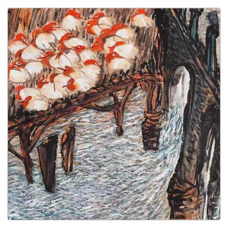 段落短评:在丰富神秘的色彩中,让人忘记了梵高的犹豫,‘趣味’永远是画家不死的灵魂,只要你有一双发现美的眼睛,那么生活将处处蕴藏(蒙娜丽莎的微笑)就如那优美的天鹅在湖中小弦切切如私语。那抱团取暖的野凫,枕惊涛骇浪于底,依旧闲定自若,凯旋而归的鱼儿像得胜的将军陈兵列阵气势逼人,从简淡生活野趣以小喻大,画中自有禅气。