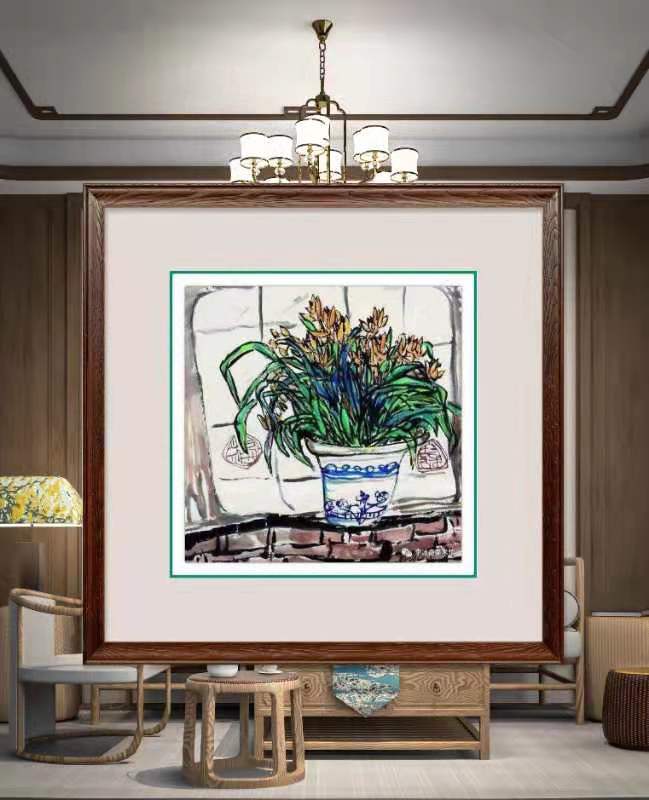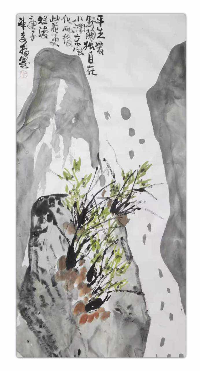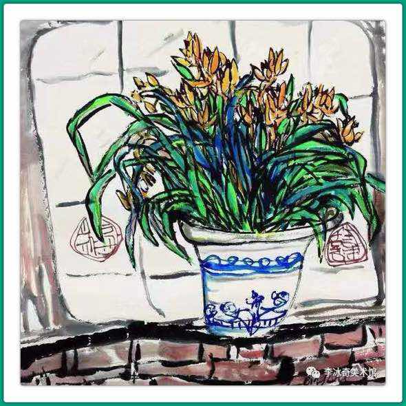 窗台的兰花安静郁郁独放,幽而不病,它的凤眼顾盼生姿,只在自己的世界争春,从不外求。而那山谷的幽兰更为人惊艳,青青三尺剑,倚石击云深。笔法和构图上,真是气胆如浑,清寒,寂静,旷远而又空灵,将兰之野逸空谷的奔放结合一处,王者之风不可追!古有高其佩,今有李冰奇。